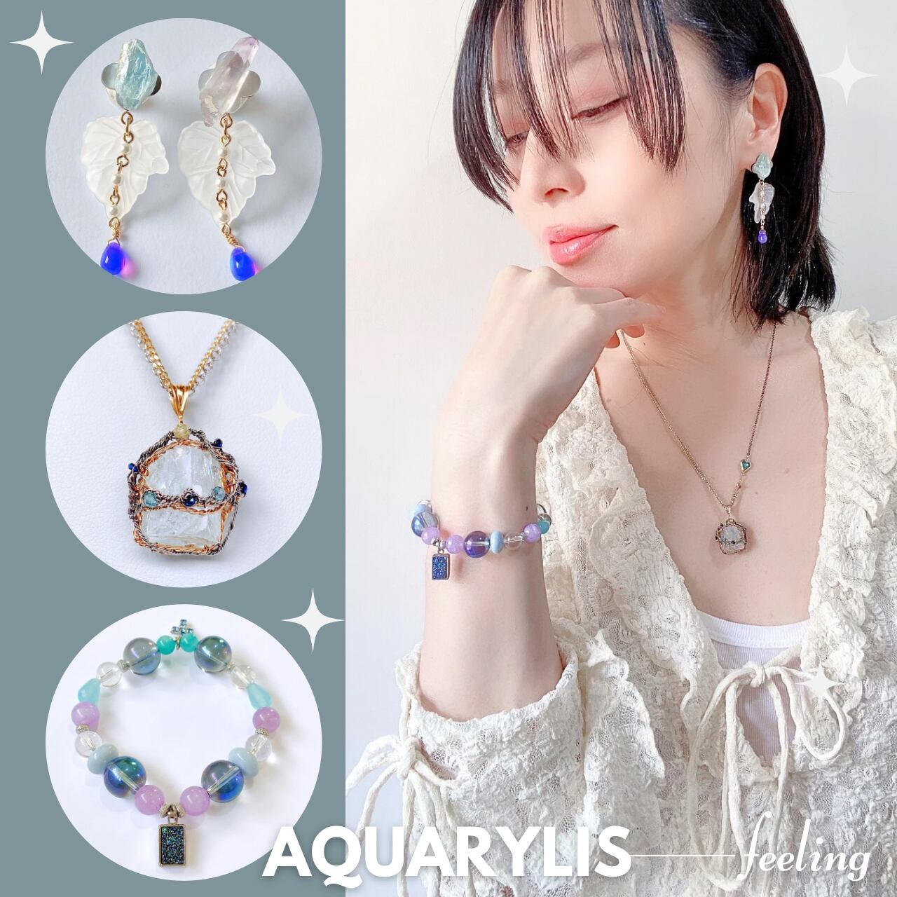 • 天然石:ドゥルージークォーツ、アメジスト、タンザナイトオーラ、ブルーオパール、水晶、ブルーカルセドニー、アマゾナイト