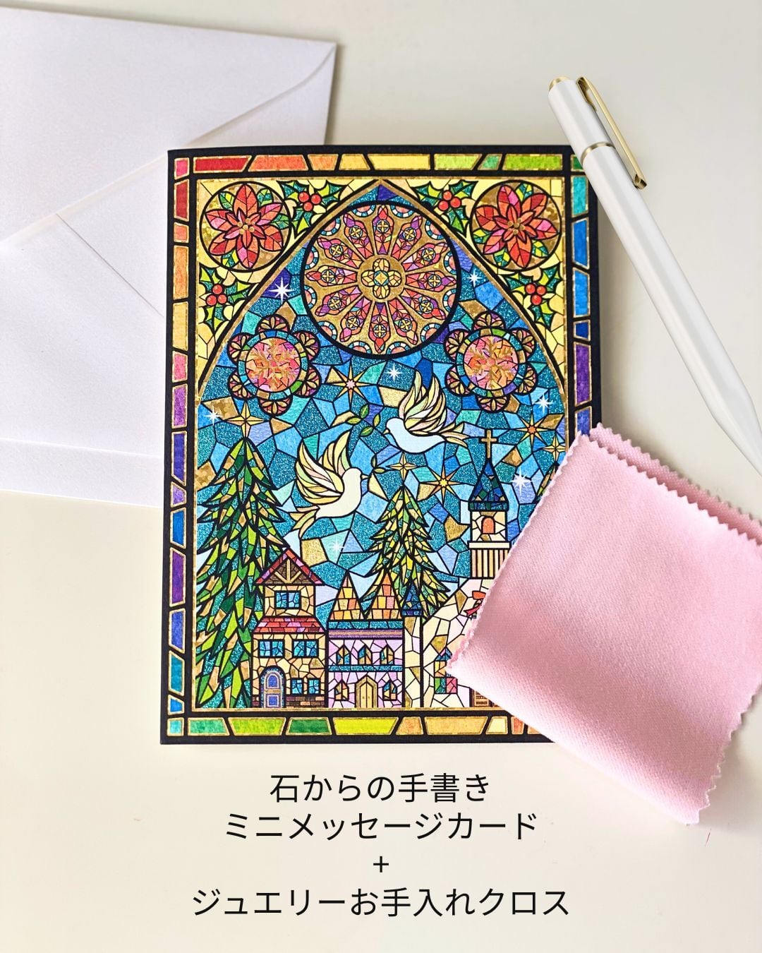 手書きミニメッセージカード + ジュエリークロス付き
