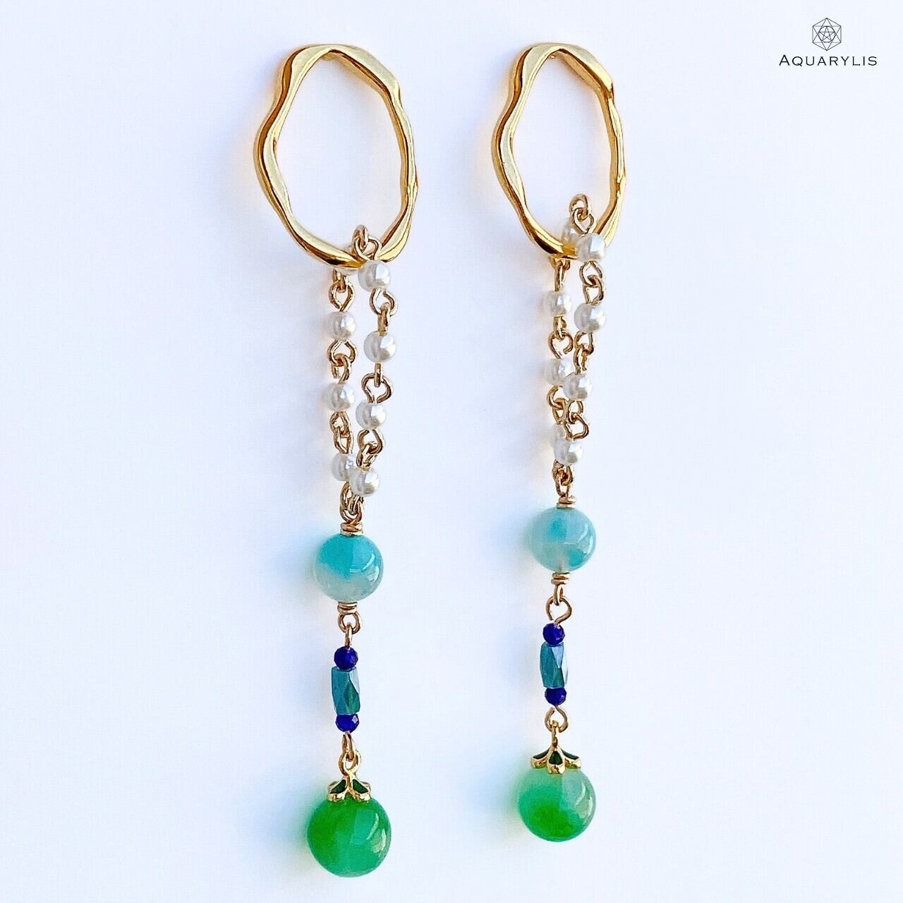 青と緑がゆらめく天然石の光が、あなたをやさしく包むピアス。