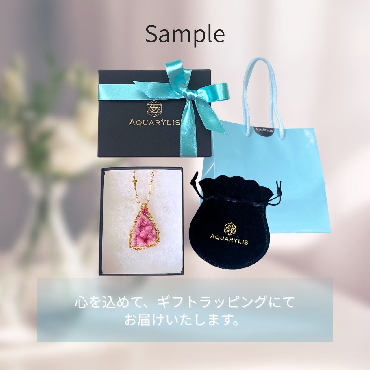 • 同梱物:ジュエリーメッセージカード/お手入れ方法カード/ロゴ入りBOX&ポーチ/リボンラッピング