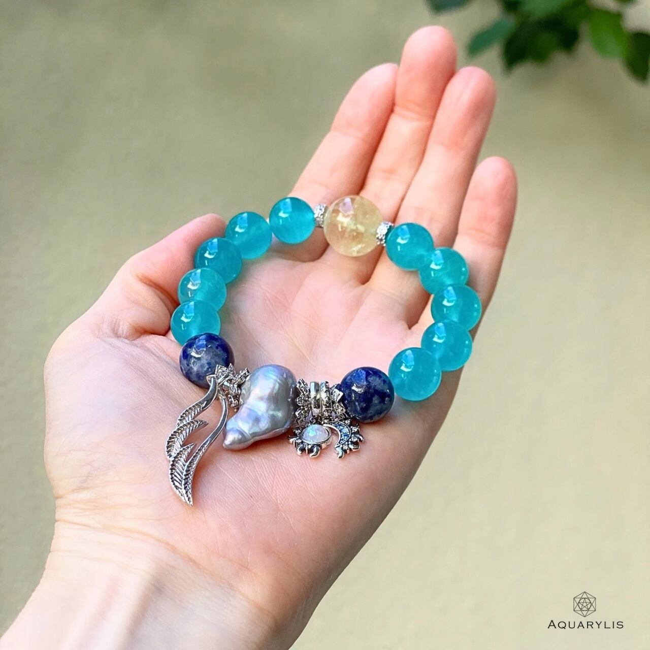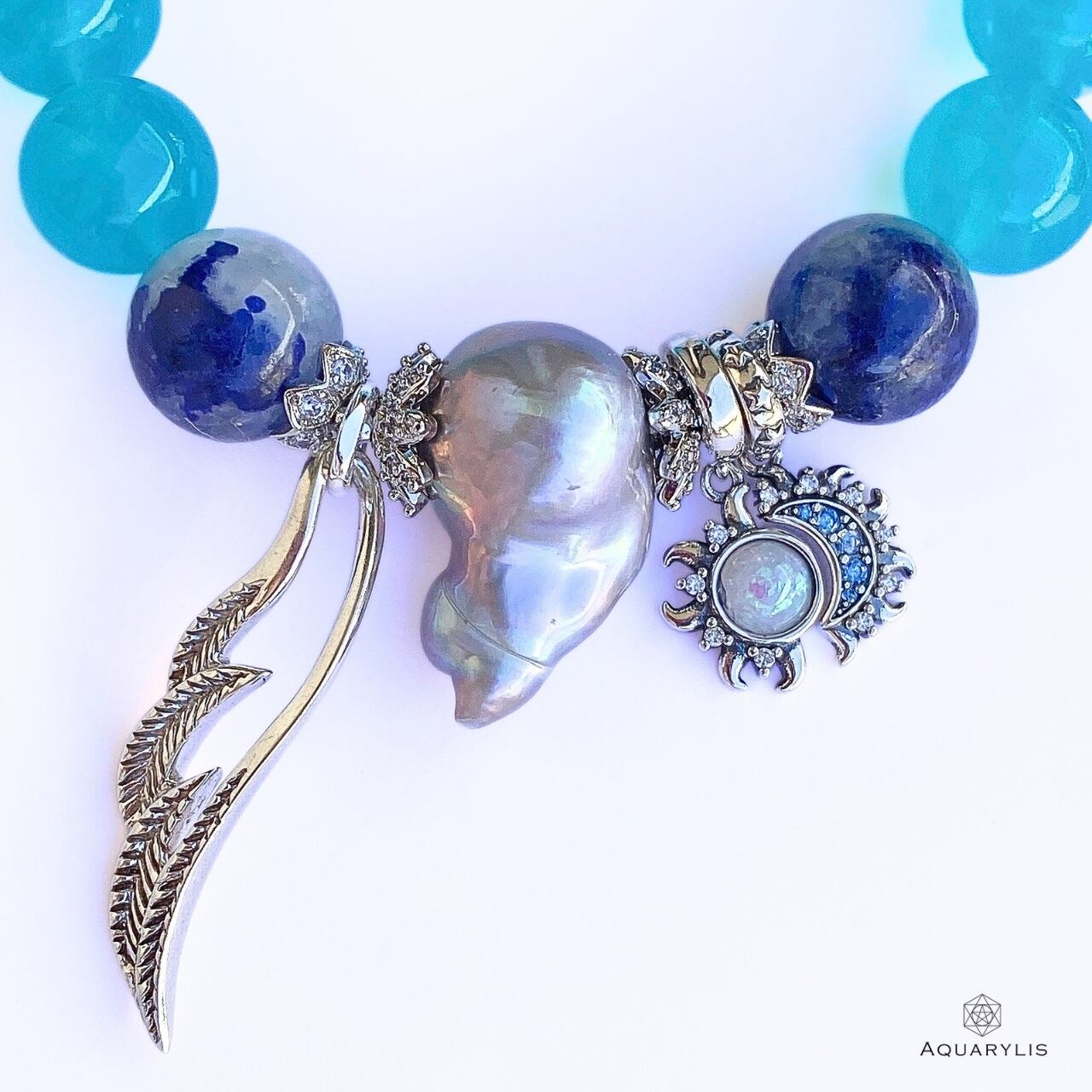 碧洋のハート|南洋真珠&ディモルチェライト ブレスレット(Silver925/フリーサイズ)|AQUARYLIS