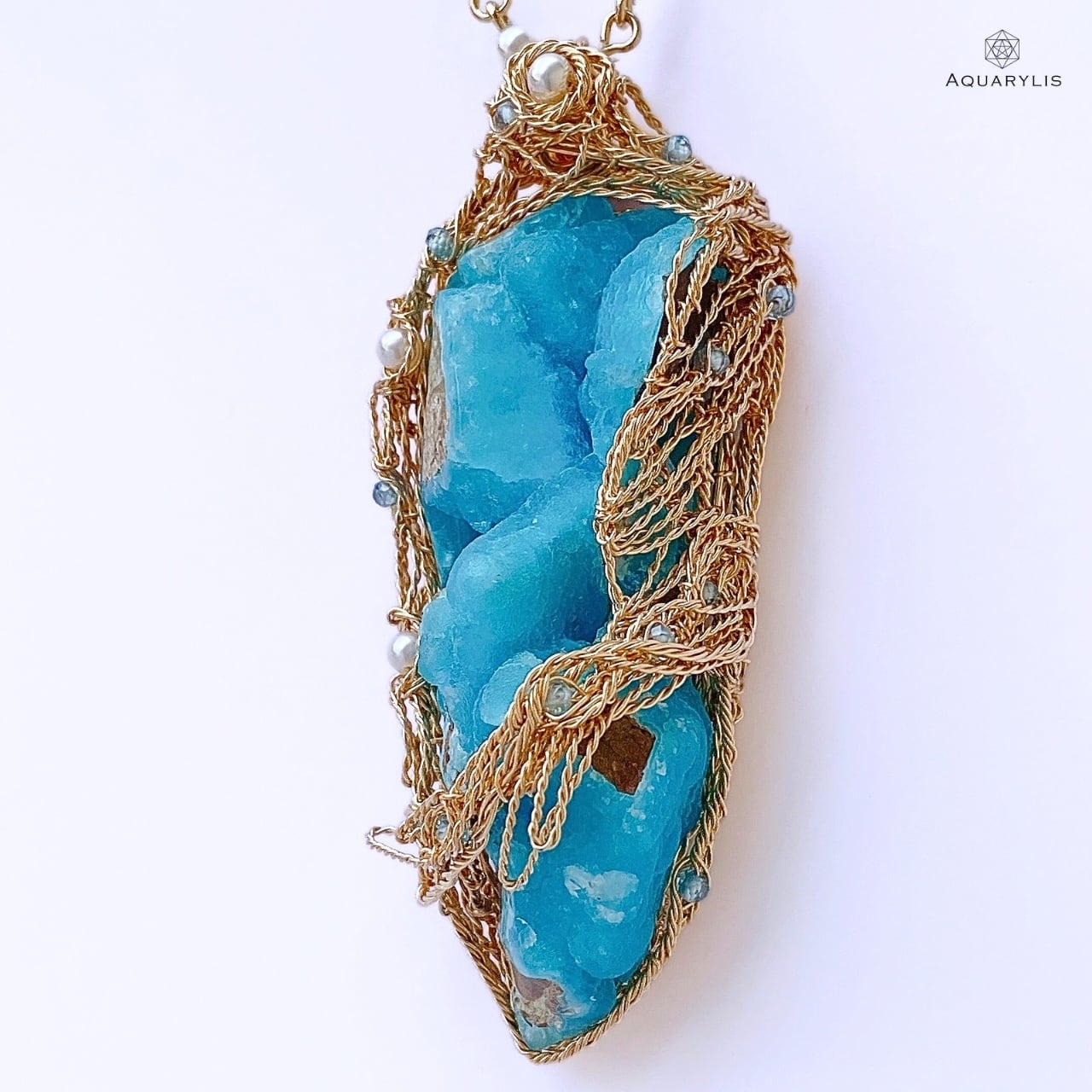 静かな光の中で感じる安心感と希望を、ヘミモルファイトの澄んだブルーで表現。