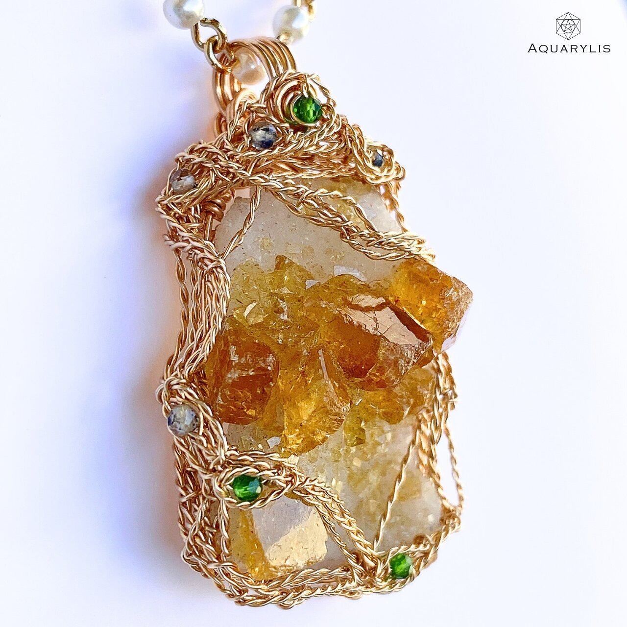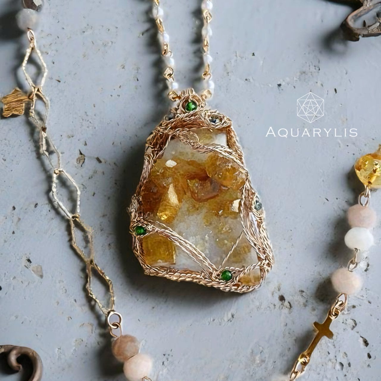 初めてイエローバライトに出会ったときの、胸に灯るような光の記憶――きらめく反射、深いレモンイエローの奥行き。その感動を“身にまとうアート”として形にしたくて、長い歳月を経てようやく完成した作品です。