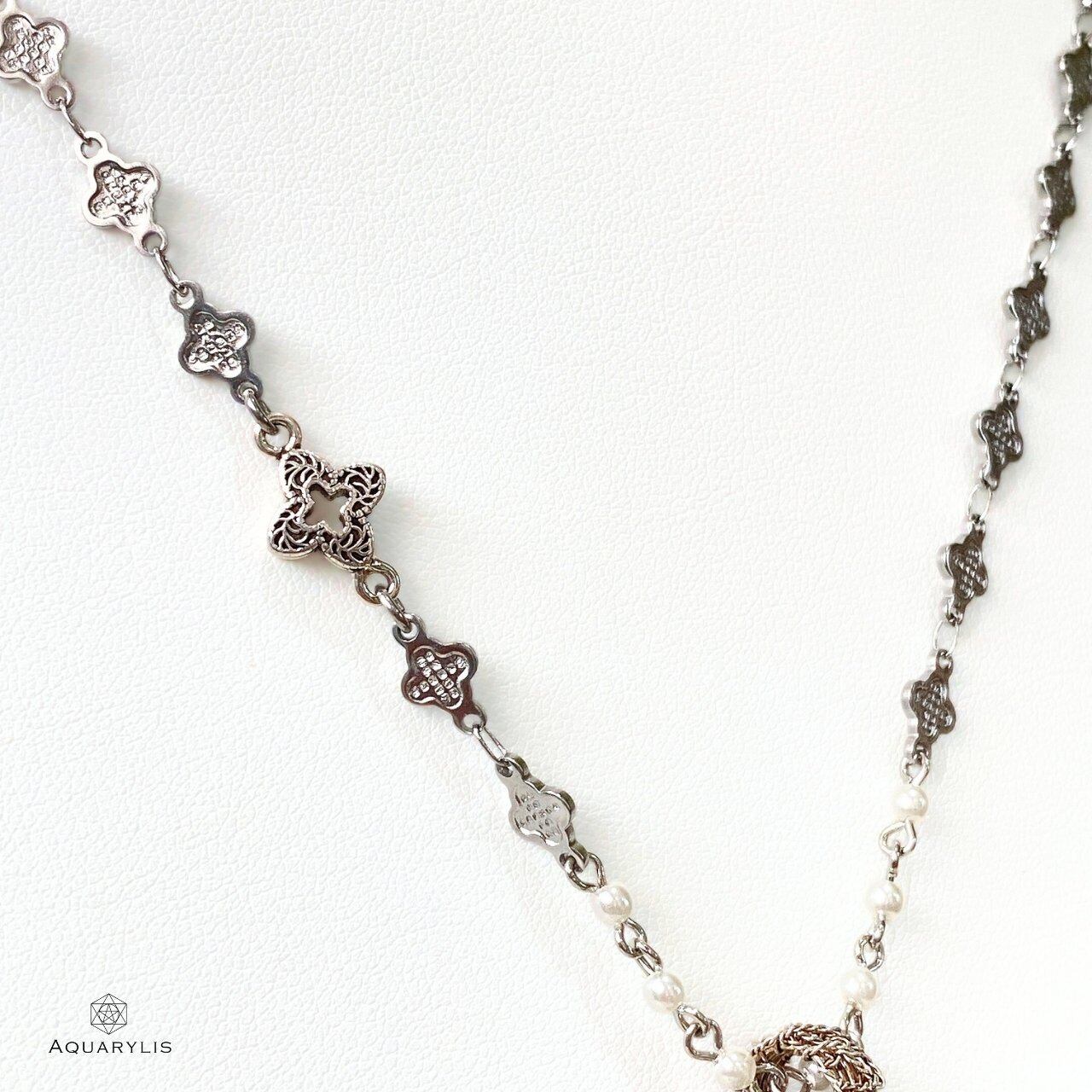 • チェーン:60cm+アジャスター10cmで調整可。クローバーモチーフとフェイクパールで上品に。
