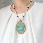 • 使用石:ブルーアラゴナイト(※長波紫外線で発光の性質あり)/ダイヤモンド/淡水パール