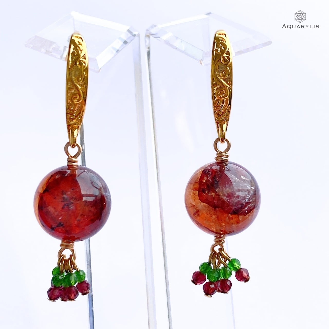 ・素材:ライモナイトインクォーツ、ガーネット、ダイオプテーズ、ステンレス(ゴールド仕上げ)