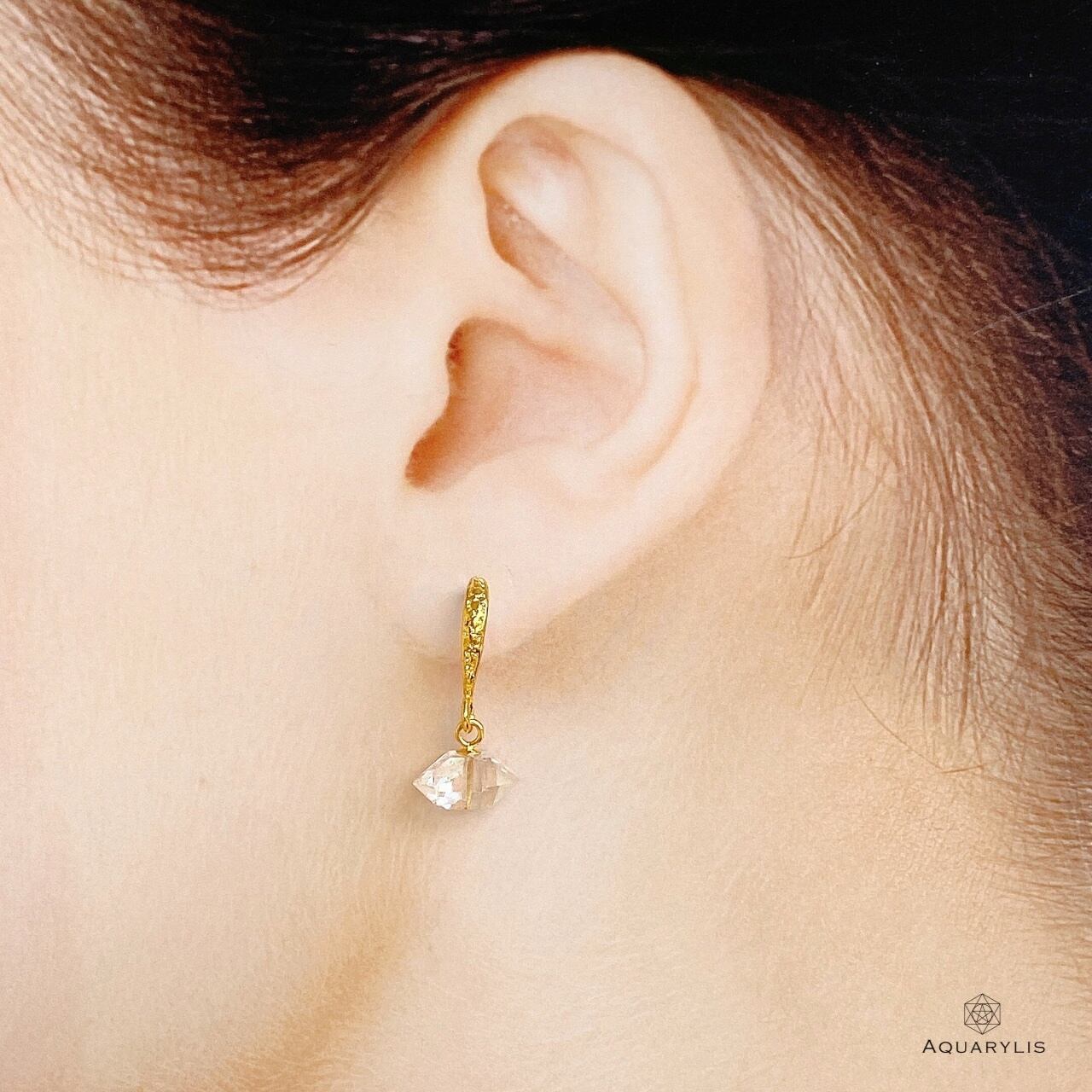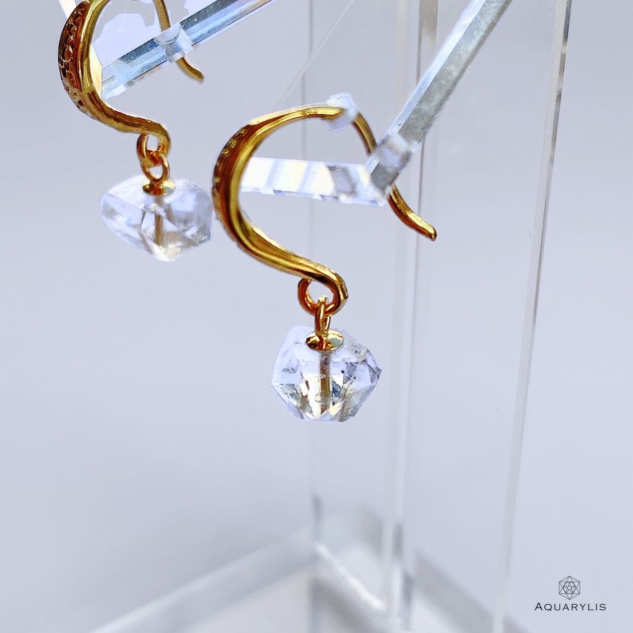 主要素材:ハーキマーダイヤモンド(NY, USA)/フック:真鍮ゴールドメッキ/その他金属:Silver金メッキ