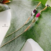 主要素材:ピンク&グリーンサファイア/アゲート/ジルコン/真鍮(金メッキ)/繊細チェーン