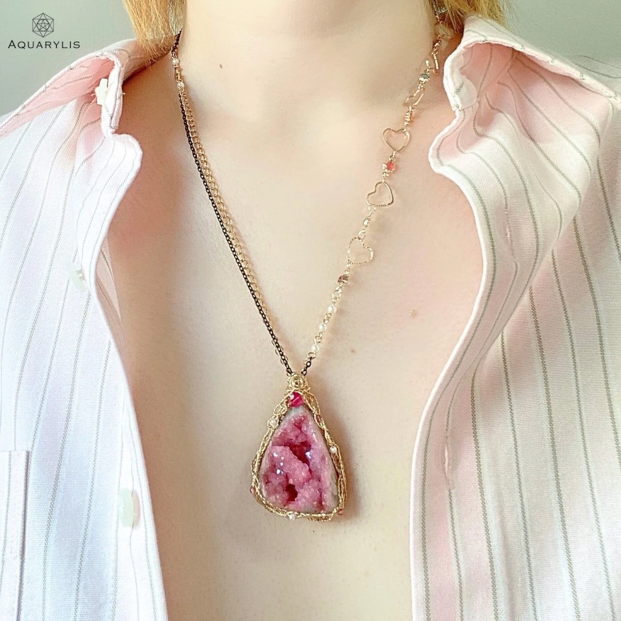 •ピンクコバルトカルサイトペンダント(モデル着用)