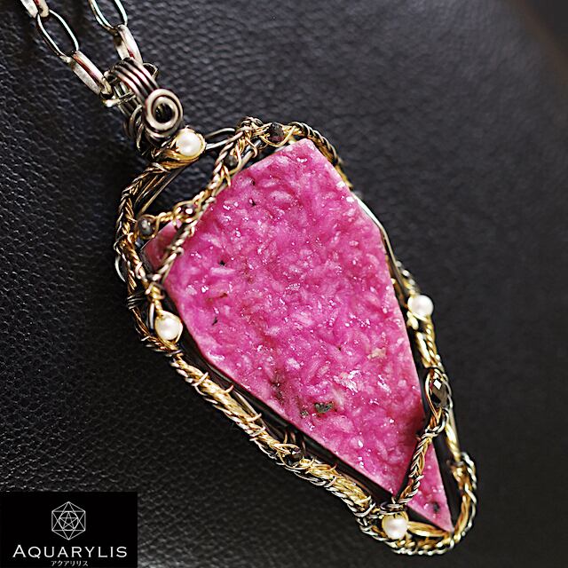・熟練の職人により研磨を施した原石を使用。大地そのままの魅力が楽しめる背面と、宝石質でキラキラ輝く結晶を楽しめる表面、ピンクコバルトカルサイトの魅力を十分満喫できるペンダントです。