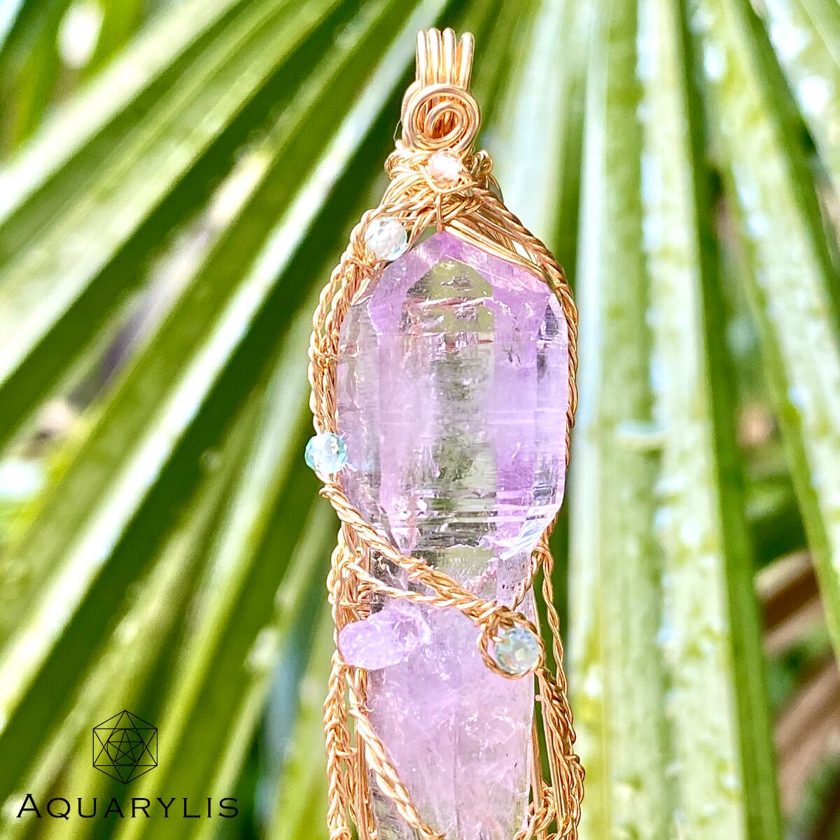 あなたがペンダントを見たり、身につけた時、ピンクバイオレットの美しい輝きが心を満たし、あたたかい春風を人生に運ぶようなヒーリングエナジーをお届けしたい。こんな想いを込めてお仕立てしました。