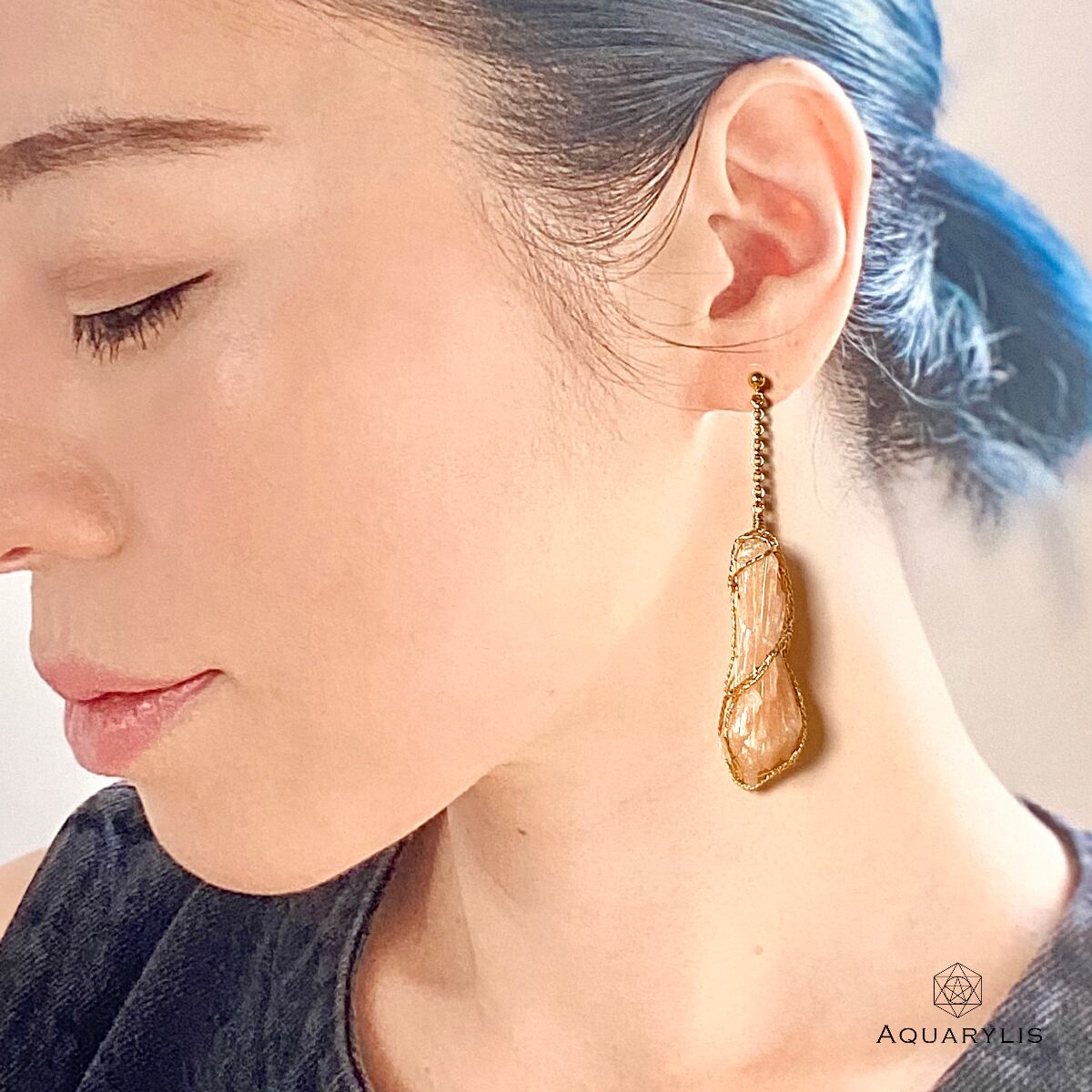 [AQUARYLIS]ピンクスティルバイトの原石ピアス動画
