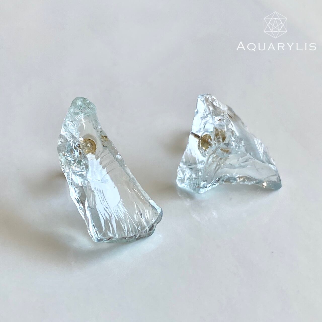 「水の宝石」、アクアマリンの原石を使用した18金ピアスです。
