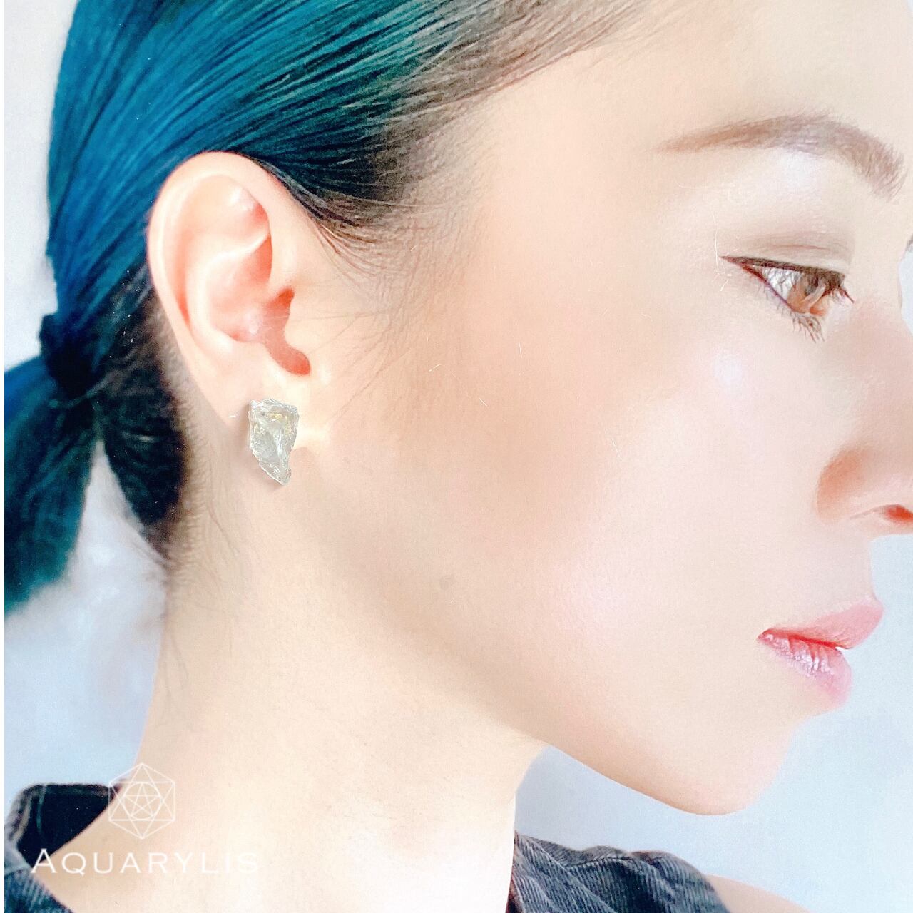 「水の宝石」、アクアマリンの原石を使用した18金ピアスです。