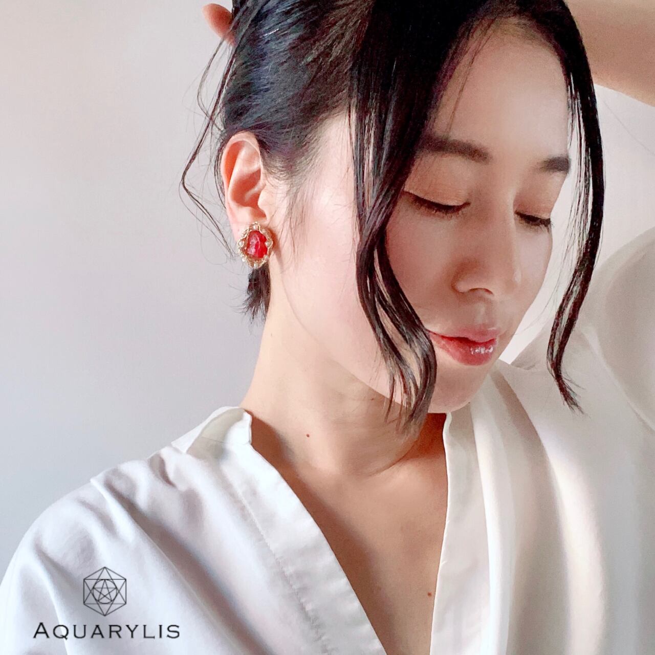 パッと薔薇の花が咲いたようなローズレッドの耳飾りは、あなたの胸の内の不安や葛藤を、サッと消し去ってくれるような、華やかなオーラに溢れています。身につけた時、エネルギーの軽い天使の翼を得たような、「麗しいあなた」と出会えることでしょう。その魅力は、あなたが本来生まれ持っている「本当の美しさ」です。