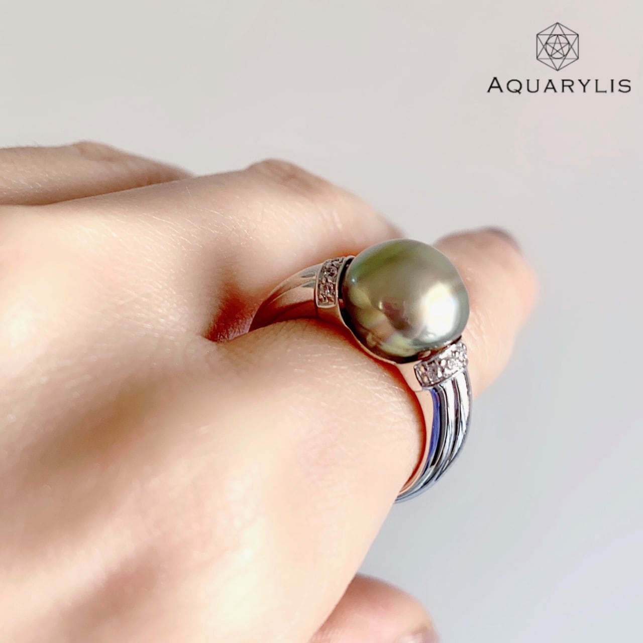 リングには「直径約10mm」の艶めく南洋黒蝶真珠を使用しております。