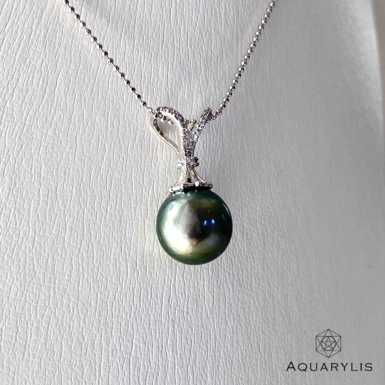 こちらのネックレスは、グリーン、シルバー、ブラックのてりのある「南洋パール(真珠)」を使用しております。
