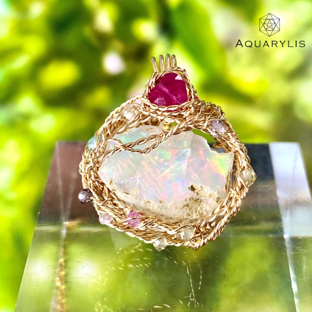 「天使のメタモルフォーゼ」宝石質なオパール&ルビーのぺンダントです。