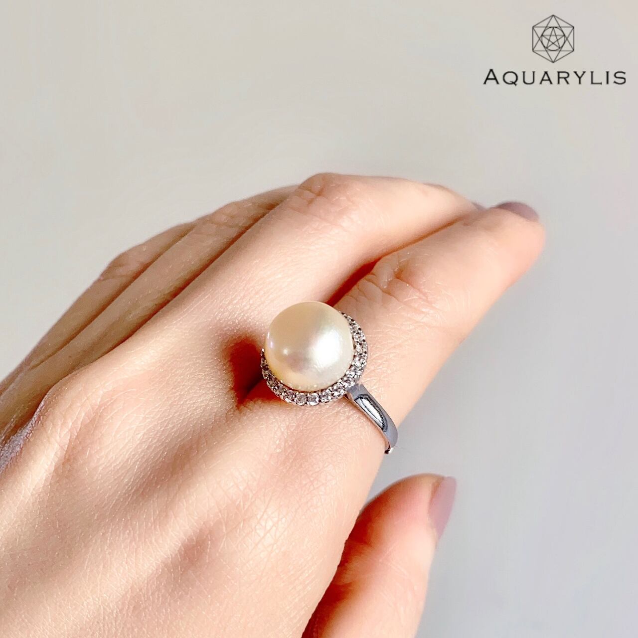 リングには「直径約10ミリ」の綺麗な淡水パールを使用しております。