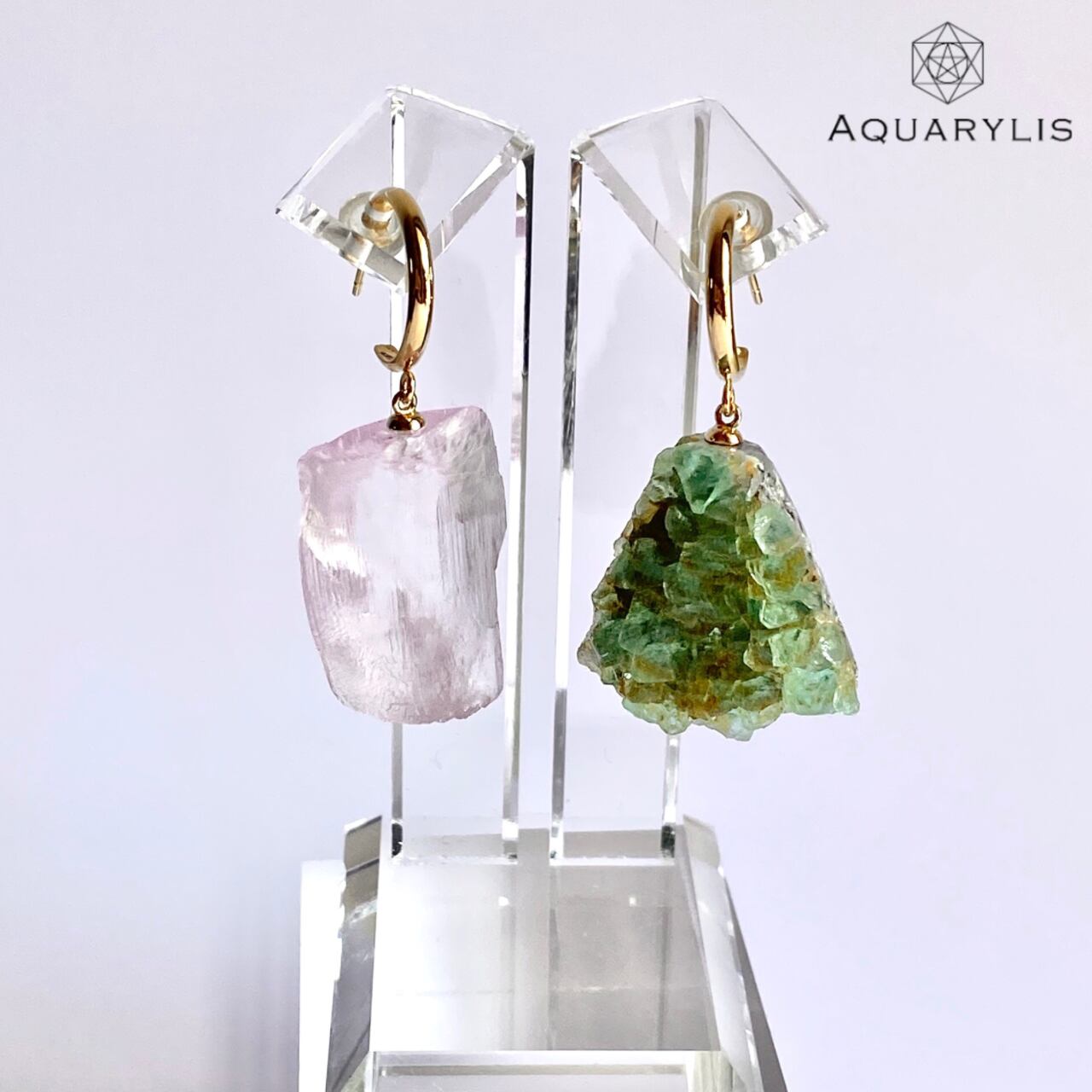 幸せの扉を開ける|クンツァイト&フローライトピアス|宝石質|フローライト クンツァイト 原石 ピアス|天然石ジュエリー ブランド|パワーストーン|人気|おしゃれ|意味|本物