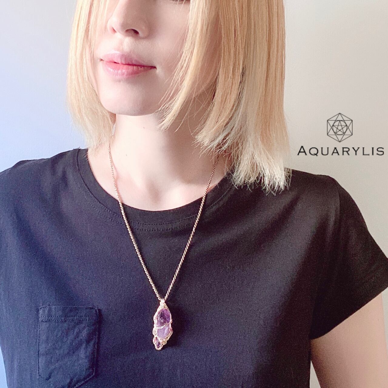 信頼を高める|ベラクルスアメジスト ペンダント|天然石ジュエリー ブランド おしゃれ|人気 アメジスト ネックレス|高品質 原石ジュエリー|パワーストーン アクアセサリー|アメジスト 紫水晶 ネックレス |一点物|石の意味|誕生石