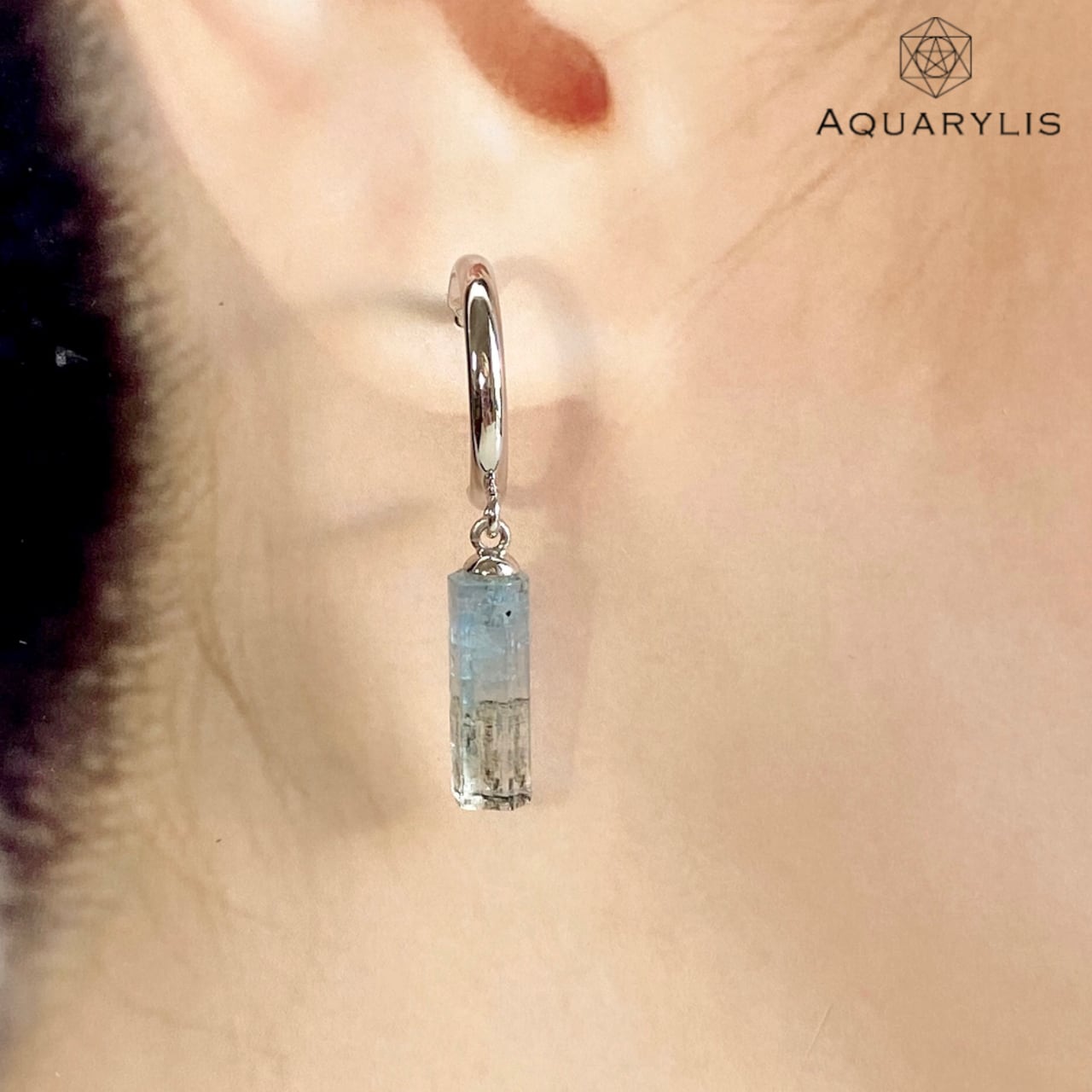 こちらのピアスには、アフリカ大陸ナミビアの大地から育まれた宝石質なアクアマリンを使用。その名の通り綺麗なアクアブルーのお色味で、水を結晶化したような神秘的な原石です。