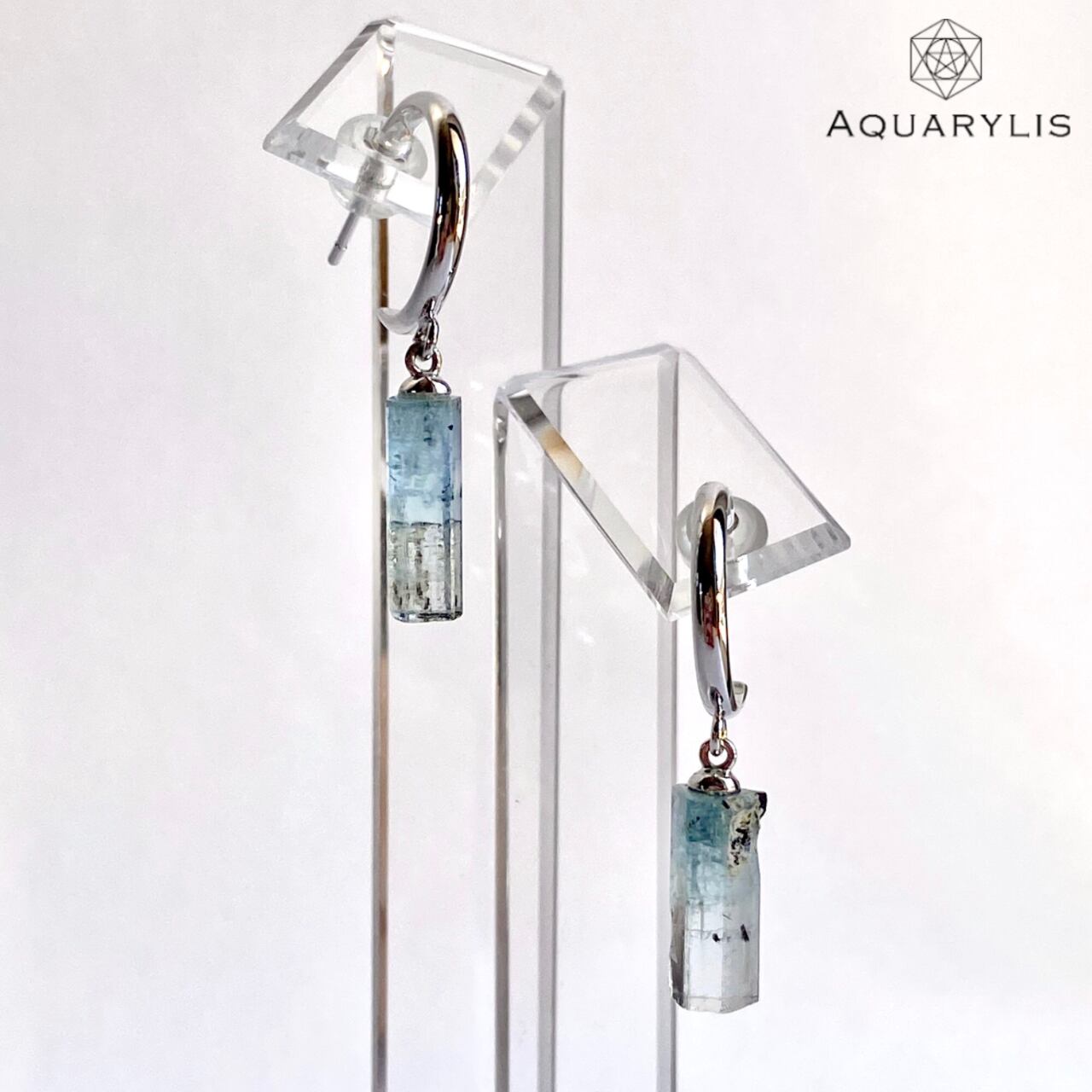 アクアマリン 原石 ピアス|シルバー色|宝石質 天然石ジュエリー ブランド|パワーストーン|人気|おしゃれ|意味|本物|3月 誕生石