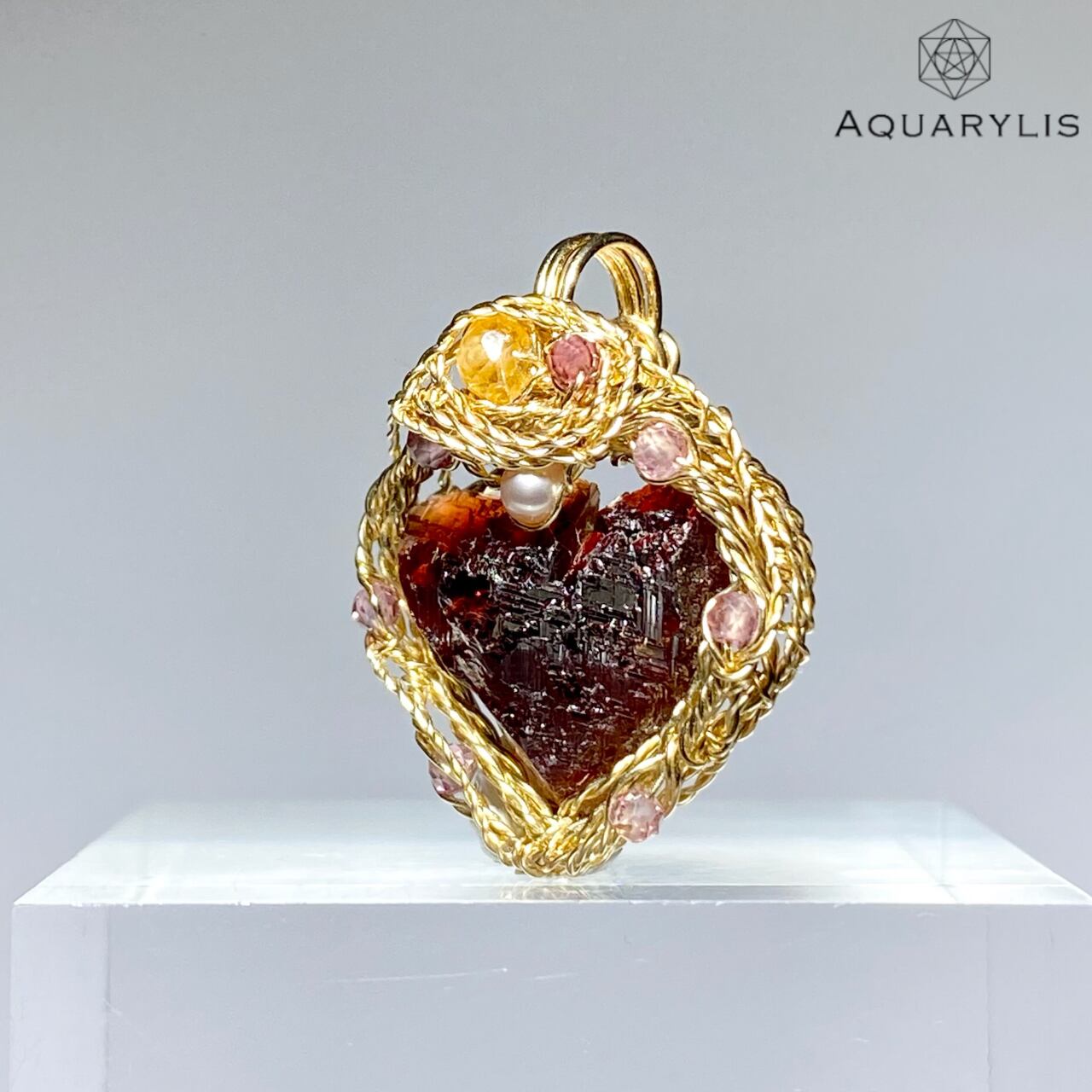 アーティストが、ガーネットを研磨し、情熱的なハート型のペンダントにお仕立てしております。