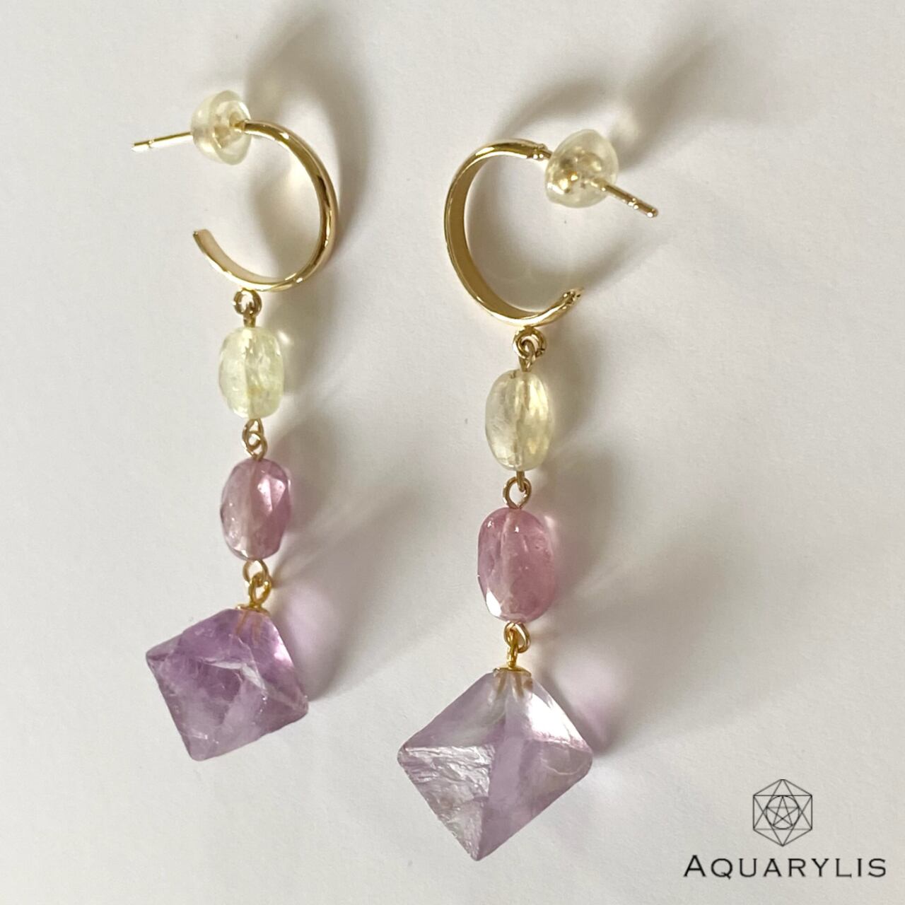 サファイア フローライト ピアス|アレルギー対応 金具|天然石 ジュエリー|パワーストーン アクアセサリー 石の意味|本物|9月 誕生石 プレゼント