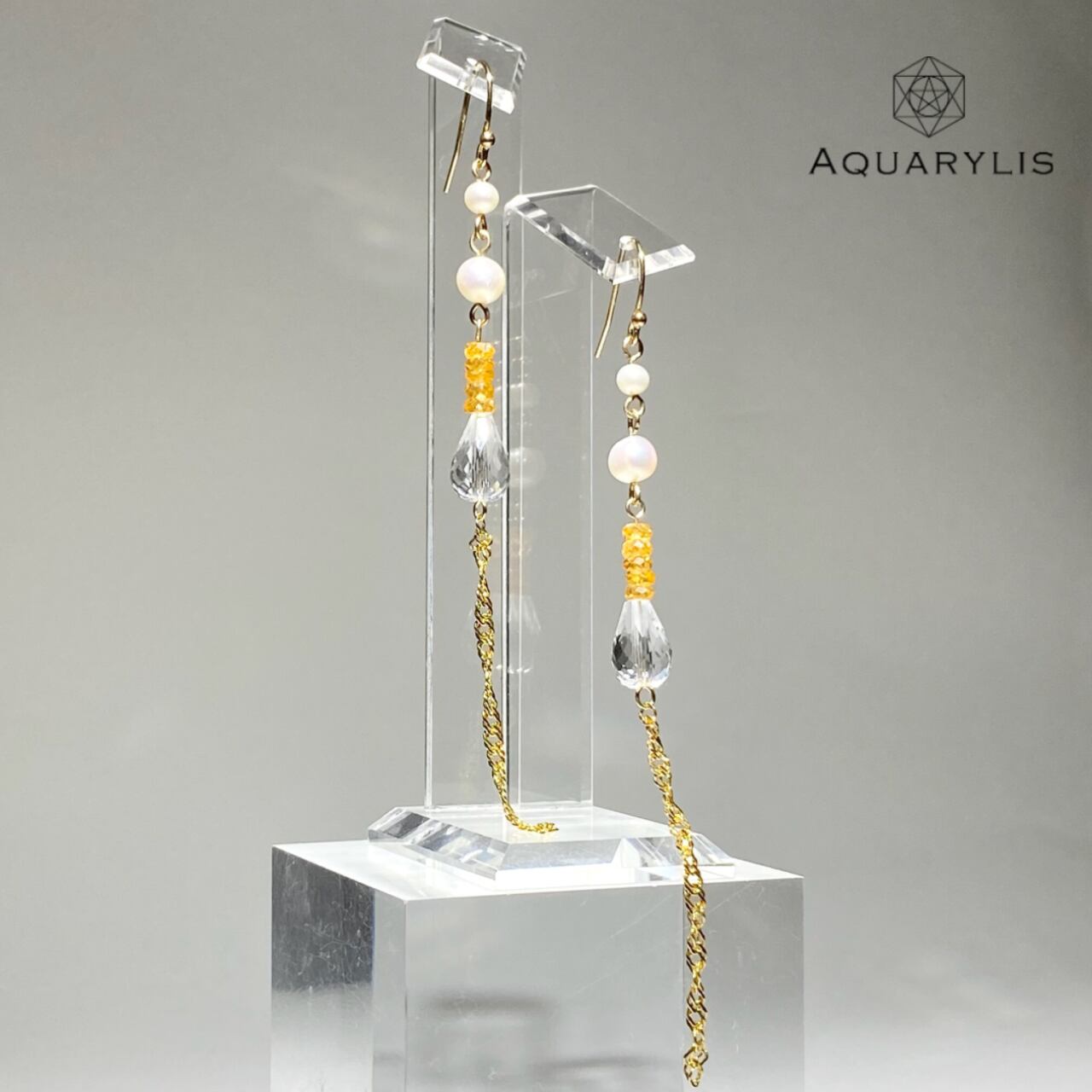 ◆天然石の種類:オレンジガーネット、水晶、淡水パール