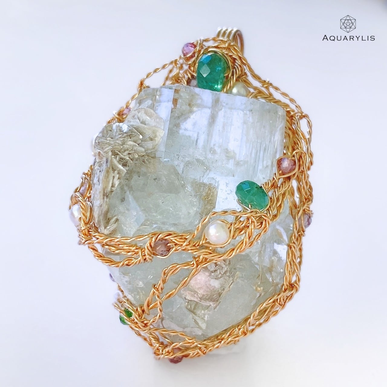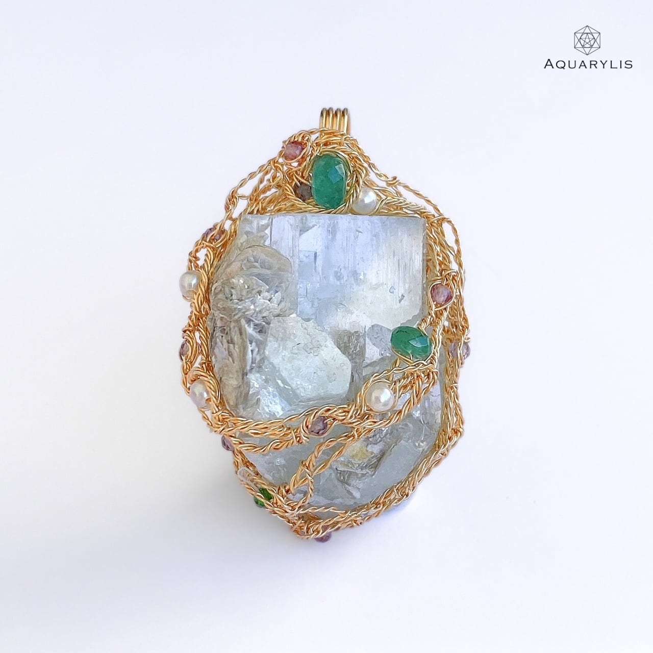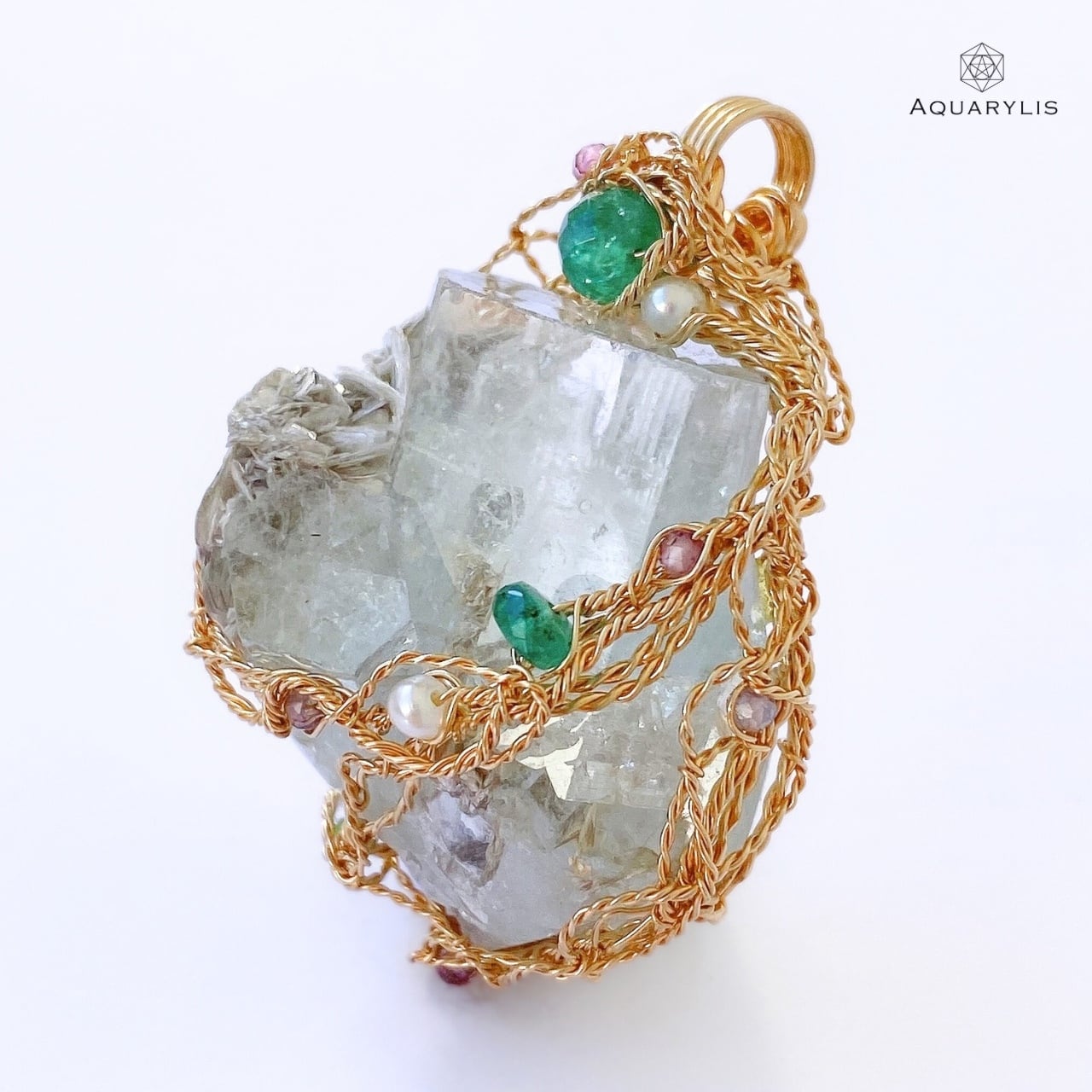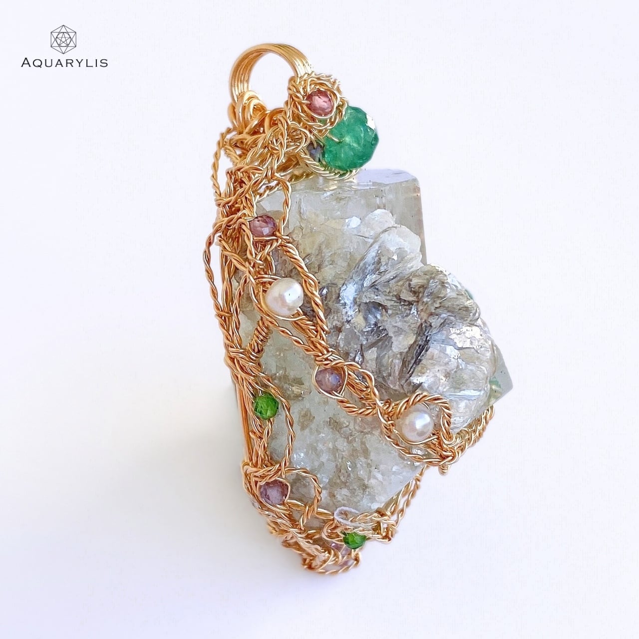 • デザイン:原石の結晶構造を活かし、360°どの角度からも楽しめるワイヤリングワーク。
