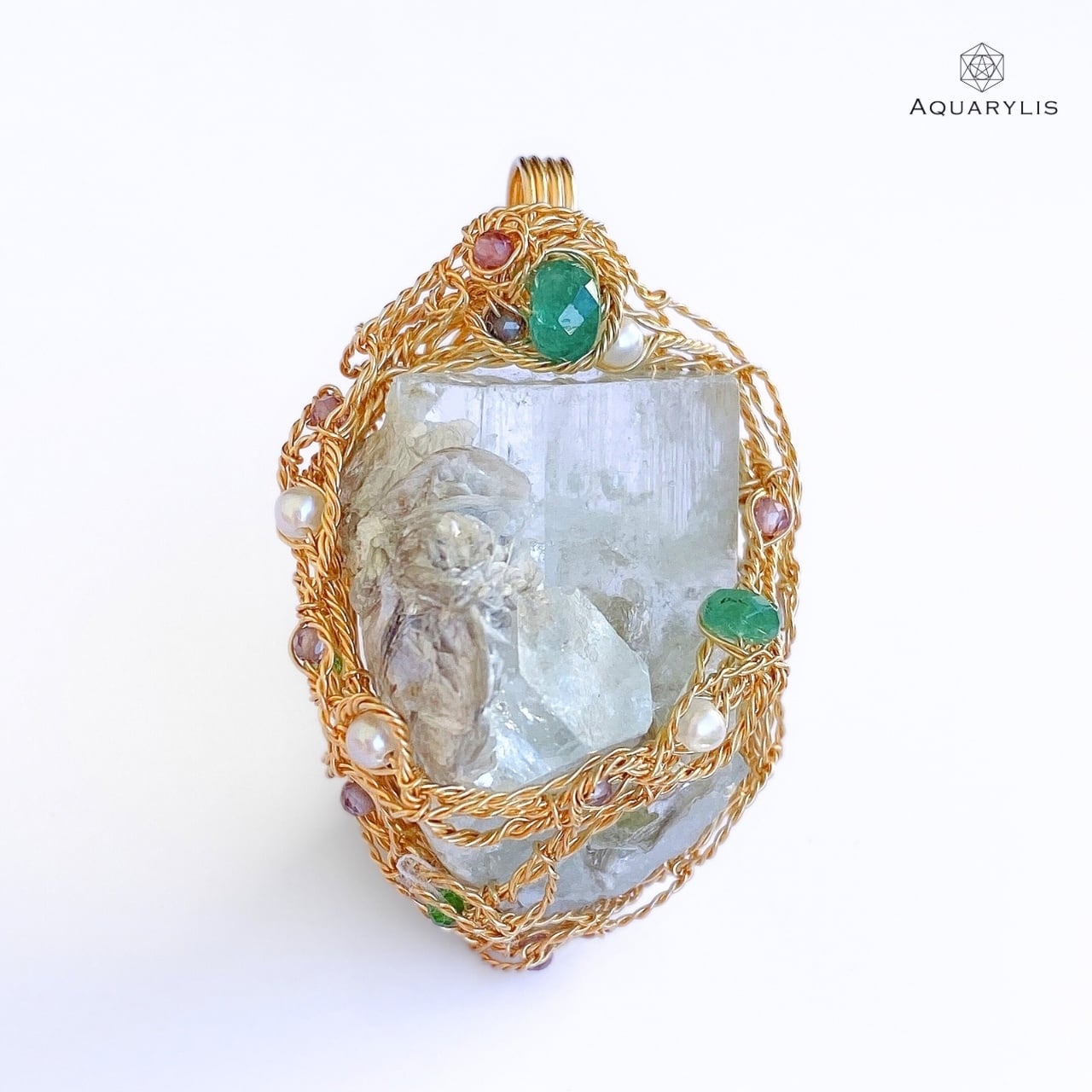Sacred Jewel of Joy・あなたの幸せの宝珠|アクアマリン&エメラルド ペンダント(K14GF/4.2cm)|AQUARYLIS