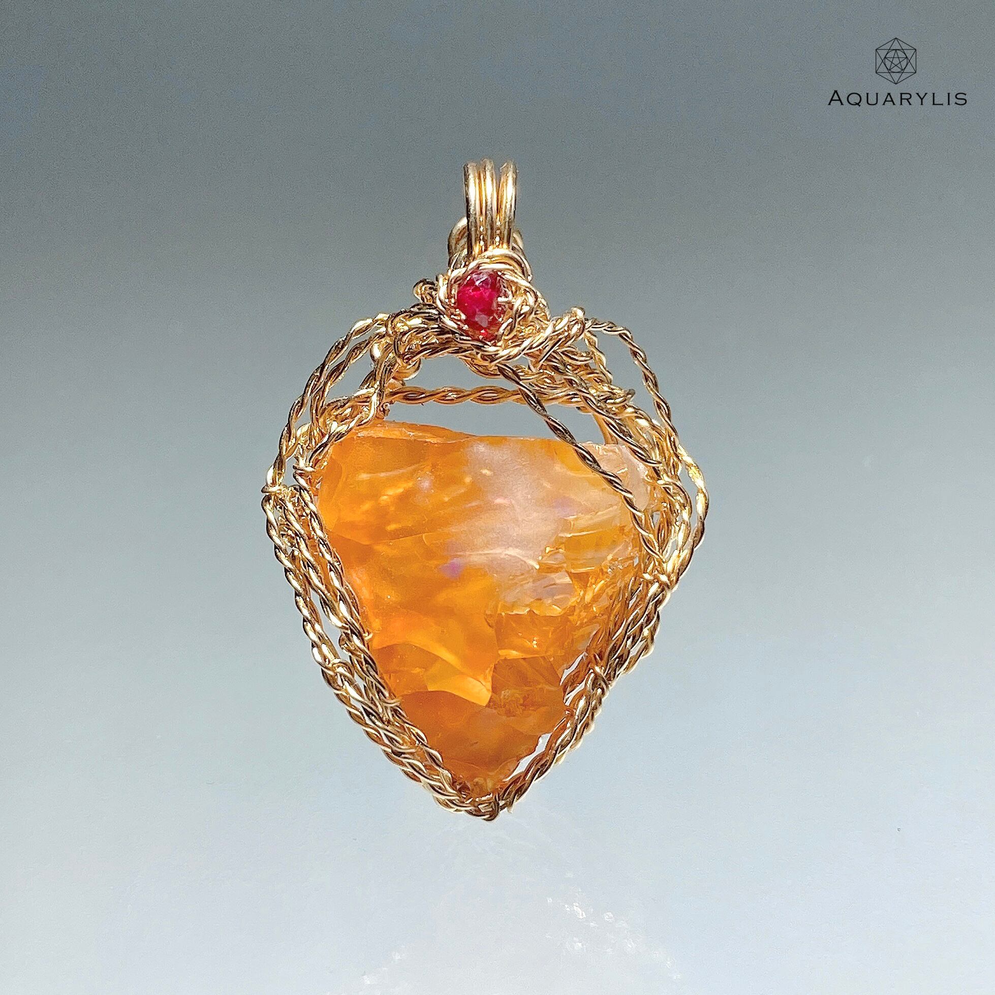 結晶がよく見えるようにしております。ワンポイントで全体がキュッと引き締まるレッドスピネルを一石使用。繊細なワイヤリングは、ハートの形にデザインをしております。