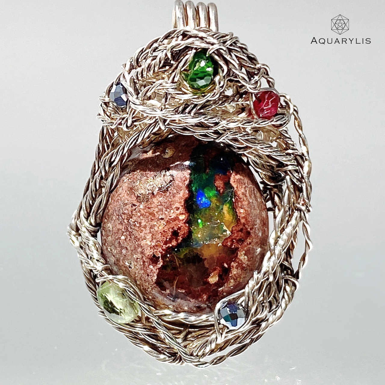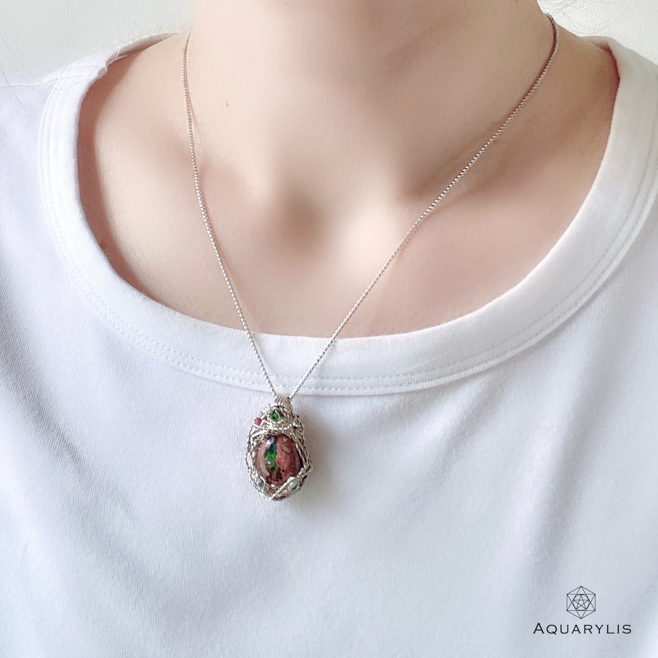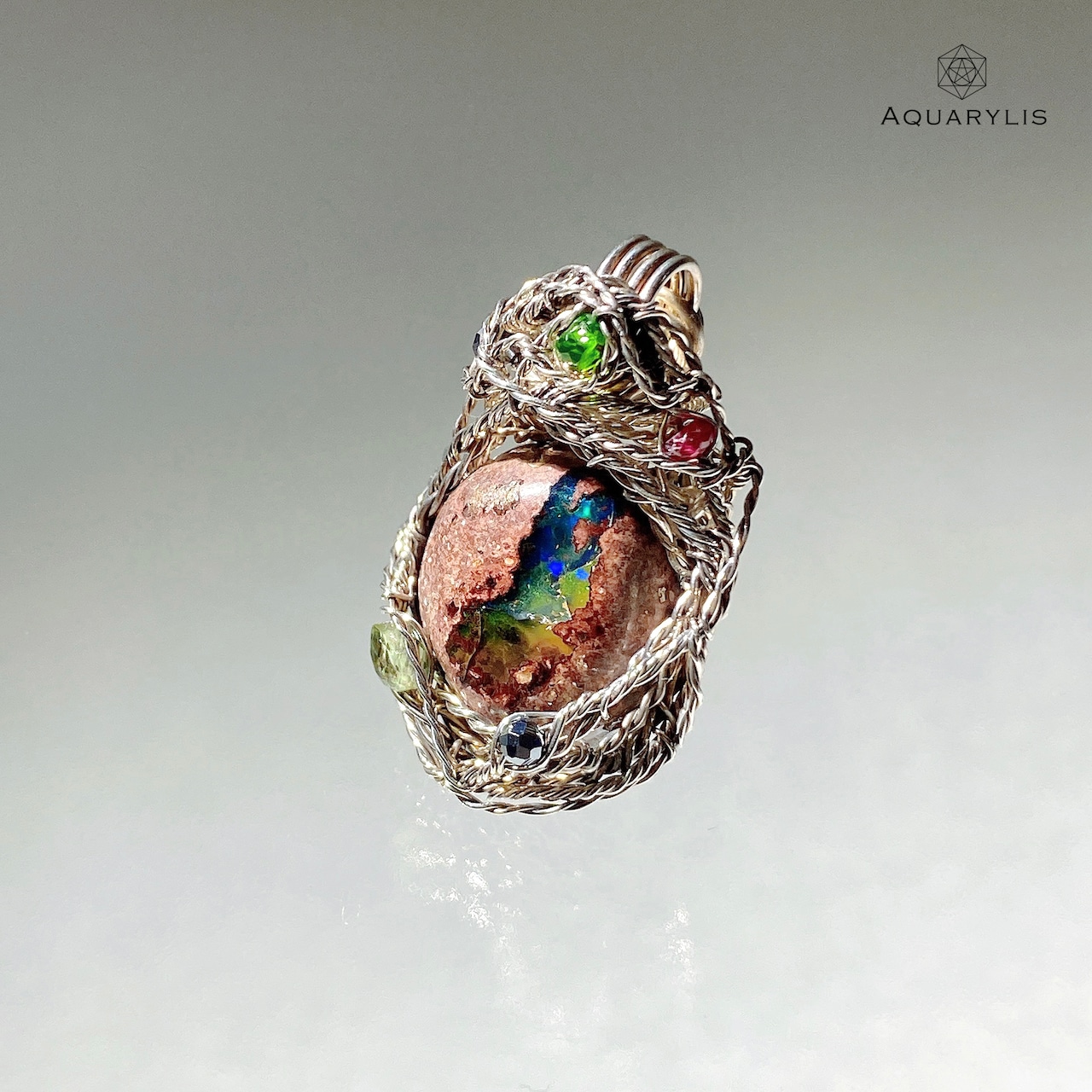 アーティストの拘りのワイヤリングで、上質なペンダントにお仕立てしております。