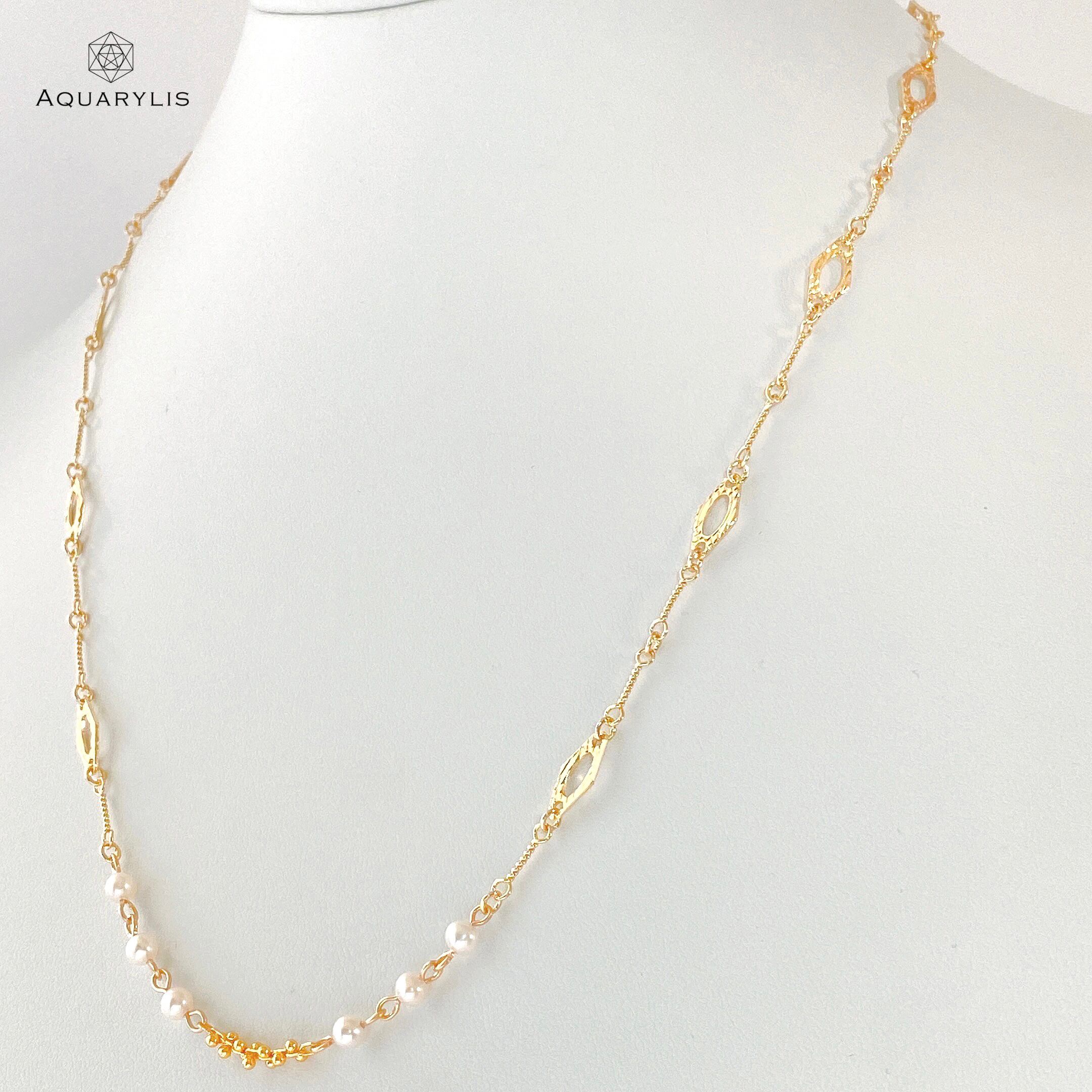 ・淡水ホワイトパール、マーキースなど、3種のデザインが連なるデザイン性の高いチェーン。