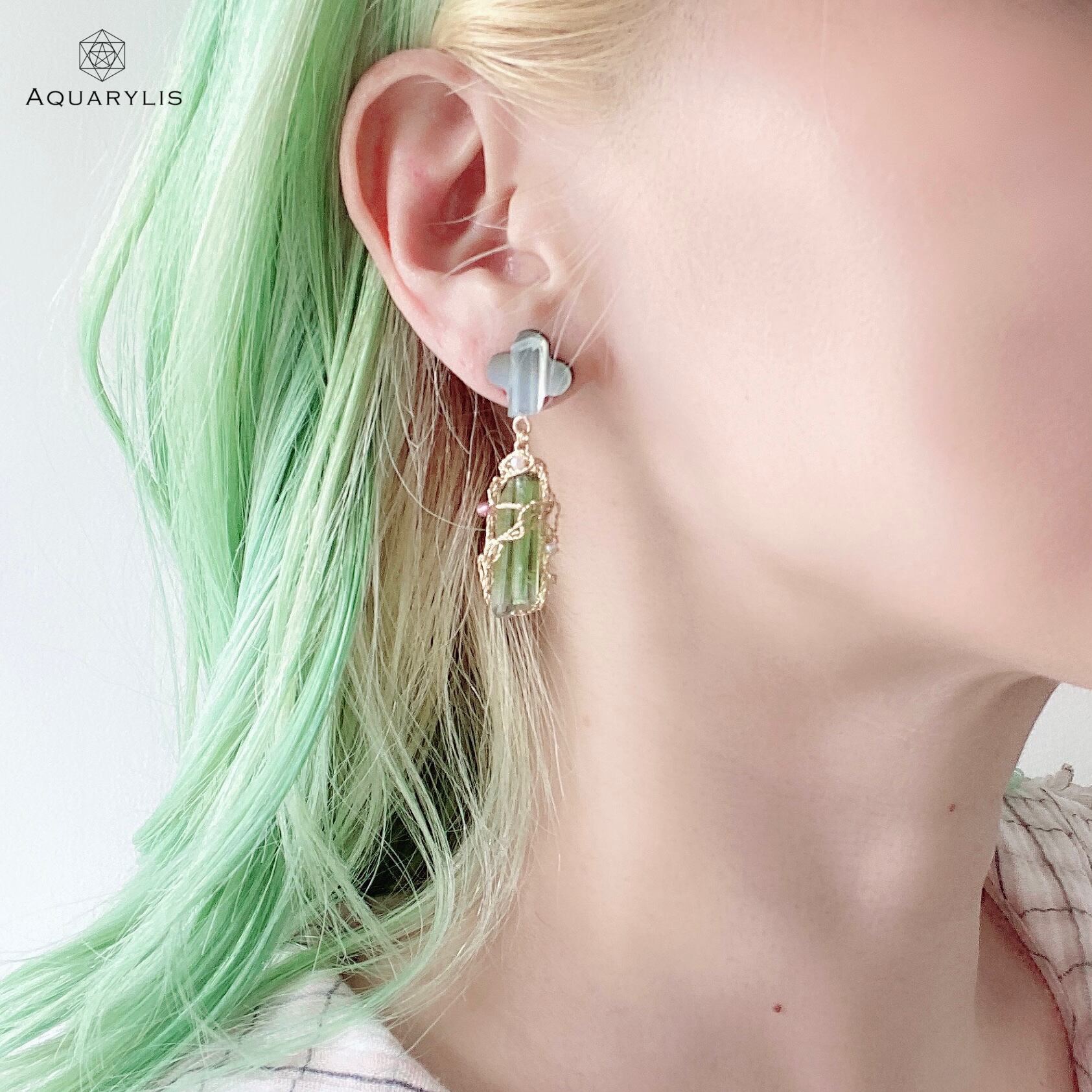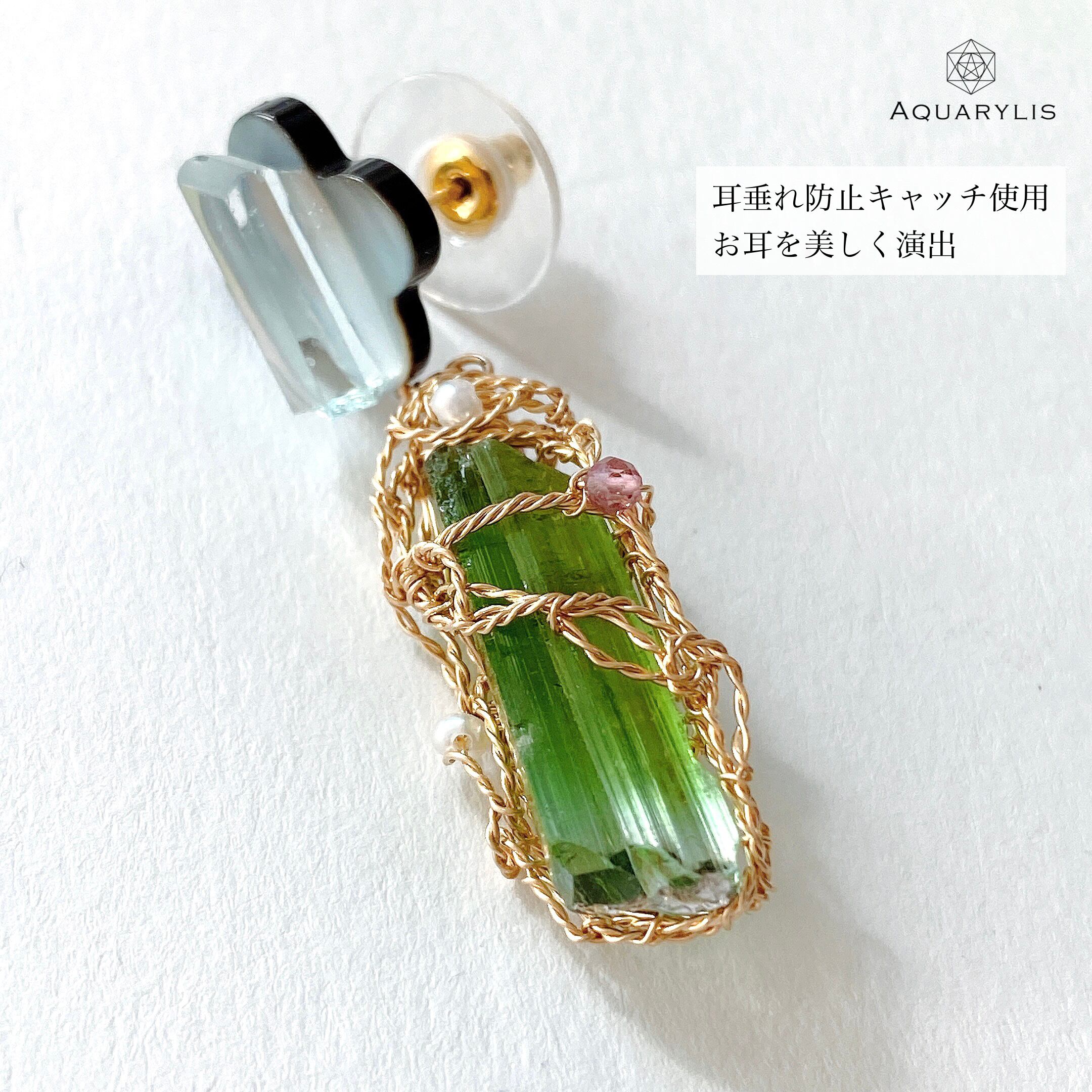 一つ一つ丁寧に仕立てられたクリエイティブでデザイン性の高いピアスです。それは唯一無二の魅力を輝かせてくれる幸運アイテムになります。あなたの日常を、原石の個性と美しい色彩で彩りましょう!