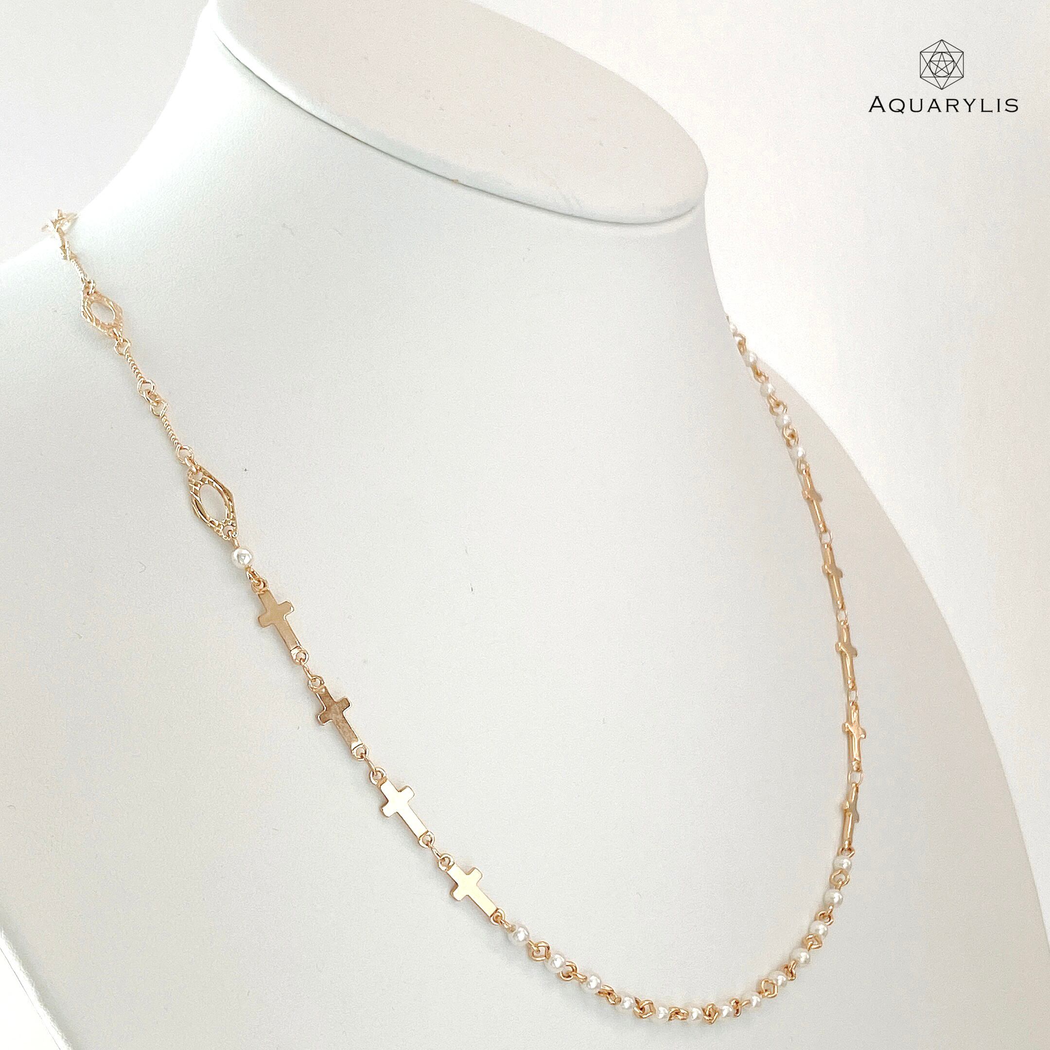 Remixチェーン アルテミス 長さ調節可能|デザイン性 おしゃれ ゴールドチェーン|パール クロス モチーフ