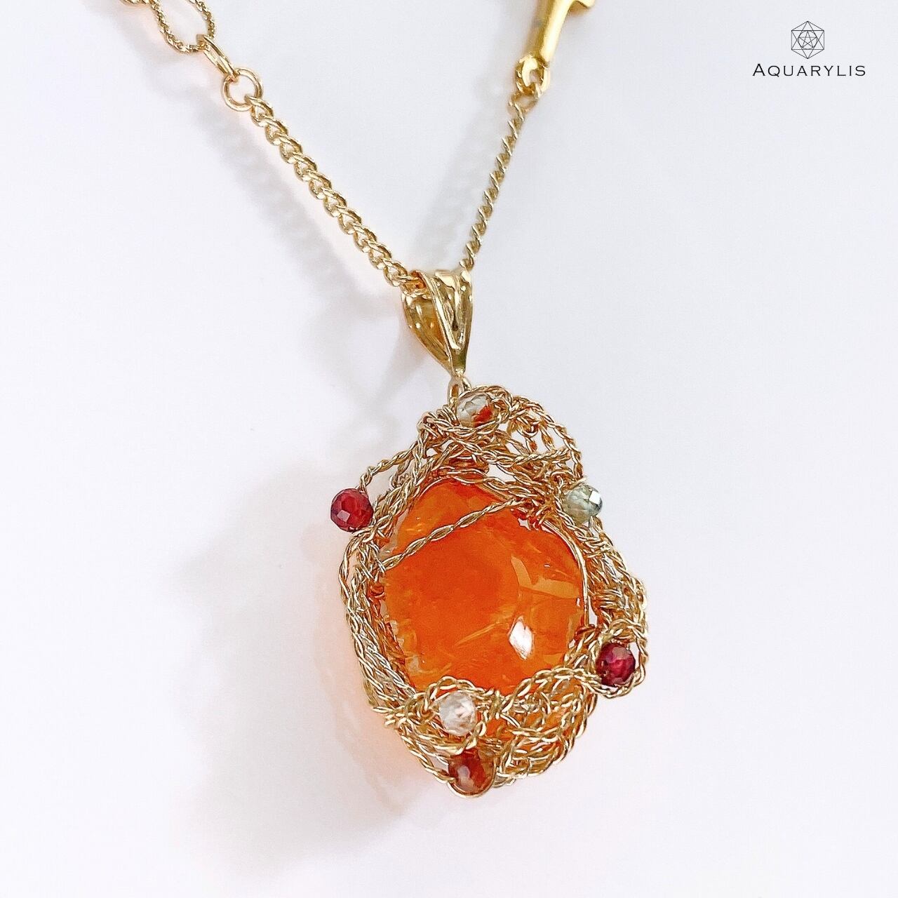 鮮やかなオレンジ色のオパールで、透明感のあるなめらかな質感が特徴です。オパールは、多彩な色調で“詩人の魂”をインスパイアする愛とロマンスの宝石。「親密な愛情を育む」ことをサポートし、愛情のある人間関係や環境に恵まれることをサポートします。アクアリリスでは、オパールに自然と惹かれるお客様の殆どが、幸せな人間関係に恵まれたり、恋愛成就、婚約や結婚、パートナーとの関係がステップアップするなど。16年に渡り、お客様から素敵な体験を多数うかがって参りました。もし、あなたがオパールに惹かれたのなら「本当の幸せが訪れるのサイン」かもしれません♡