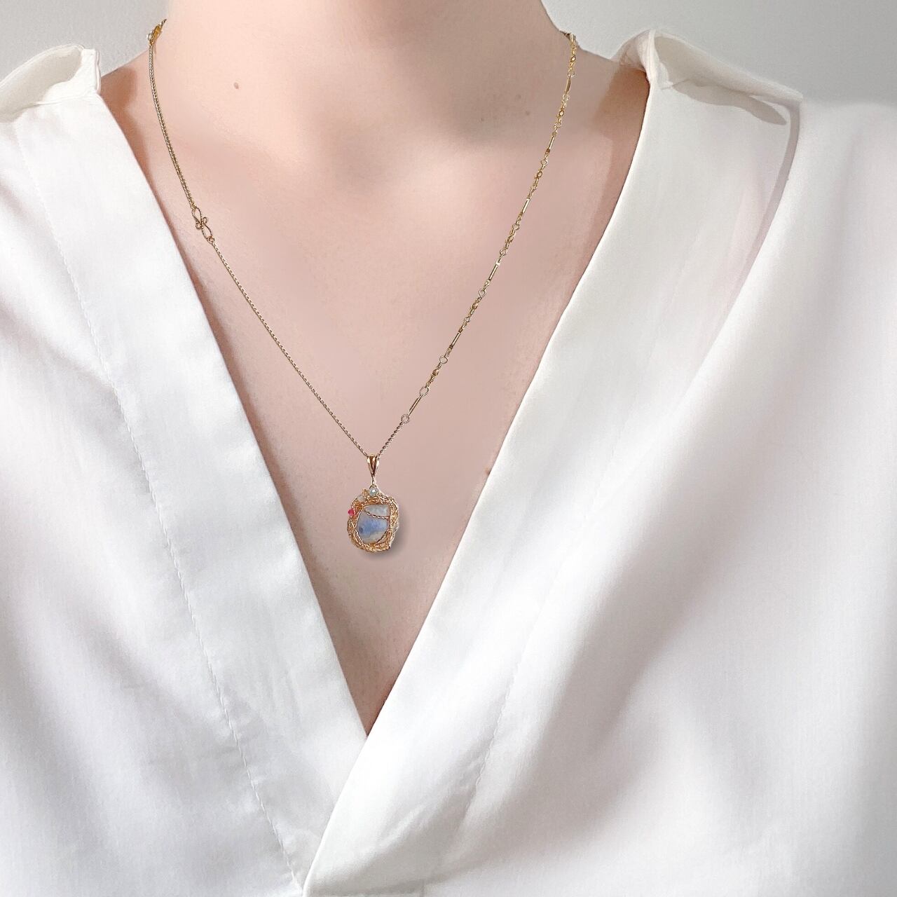 ペンダントはリバーシブルデザイン。両面で異なるデザインと石の表情が楽しめます。