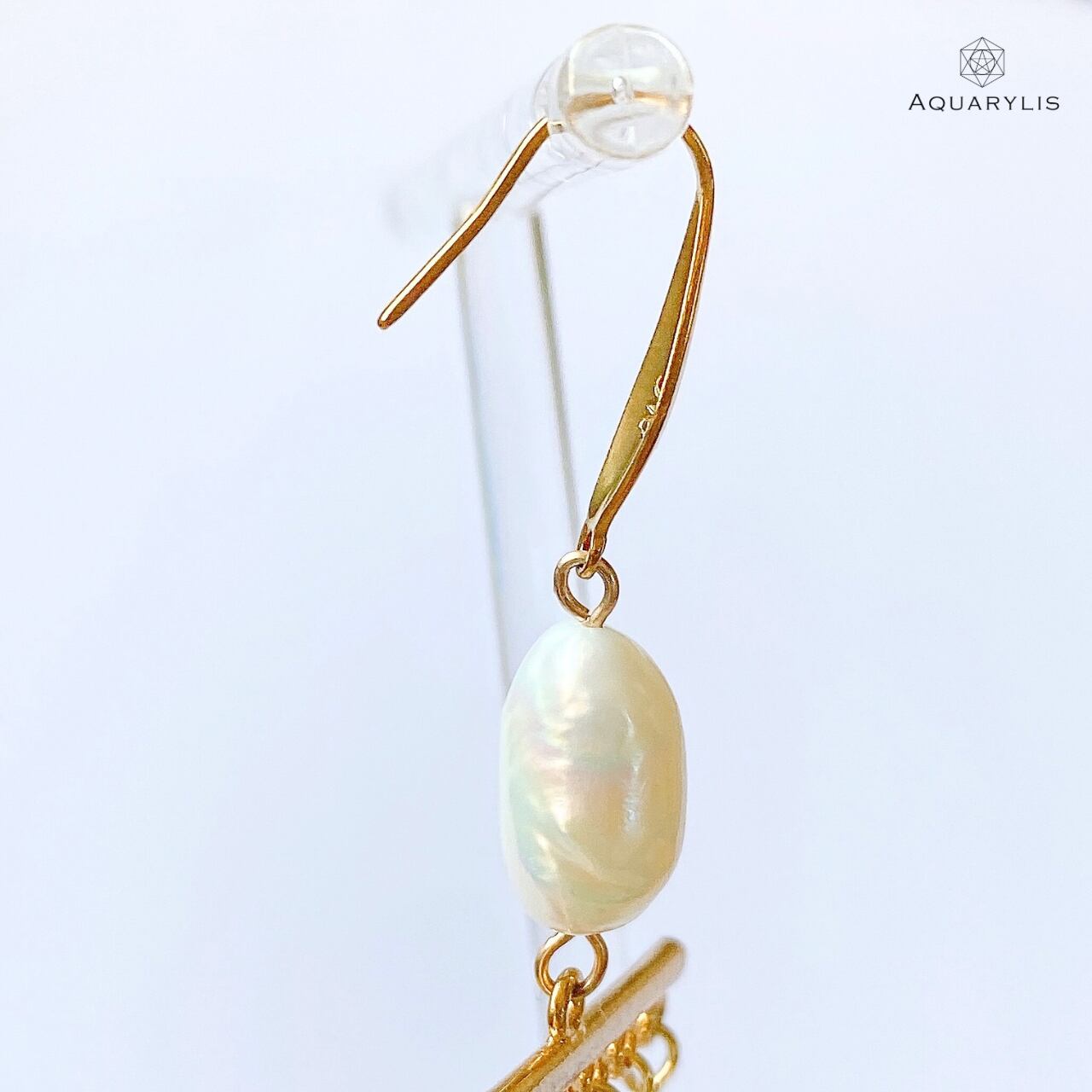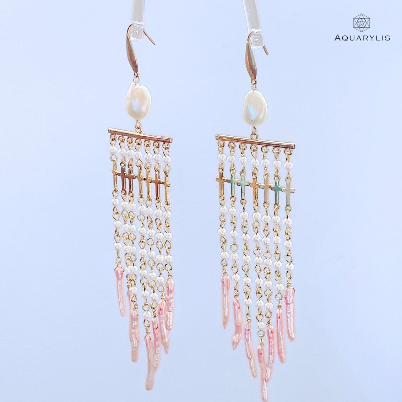 ピンクとホワイトのバロックパールが揺れる、心ときめく“ファインディング”ピアス。